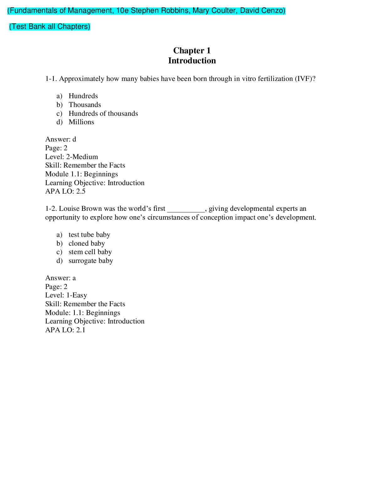 Management > TEST BANKS > Fundamentals of Management, 10e Stephen Robbins, Mary Coulter, David Cenzo (Test Bank) (All)