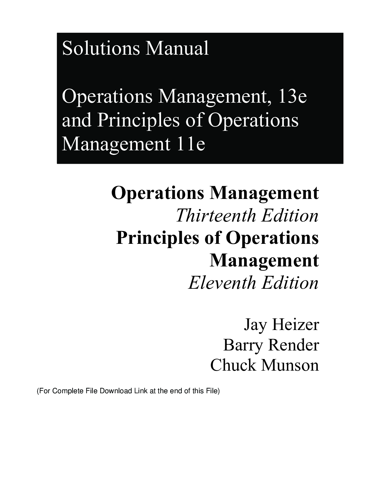 Management > TEST BANKS > Principles Of Operations Management 11e Jay Heizer Barry Render (Test Bank) (All)
