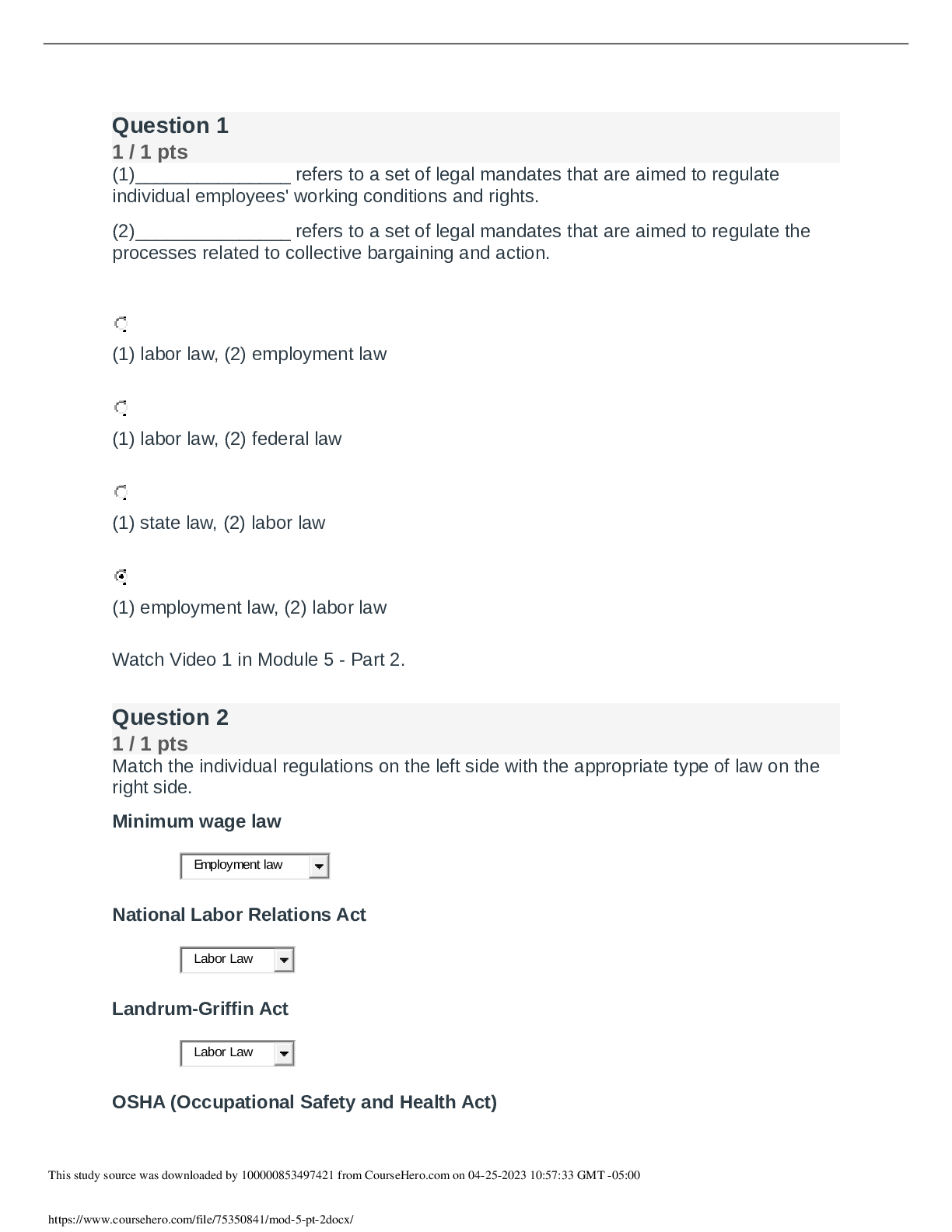 Management > QUESTIONS & ANSWERS > MGMT 3302 - Texas A&M University. MGMT 3302 Module 5. Quiz Score 100% (All)