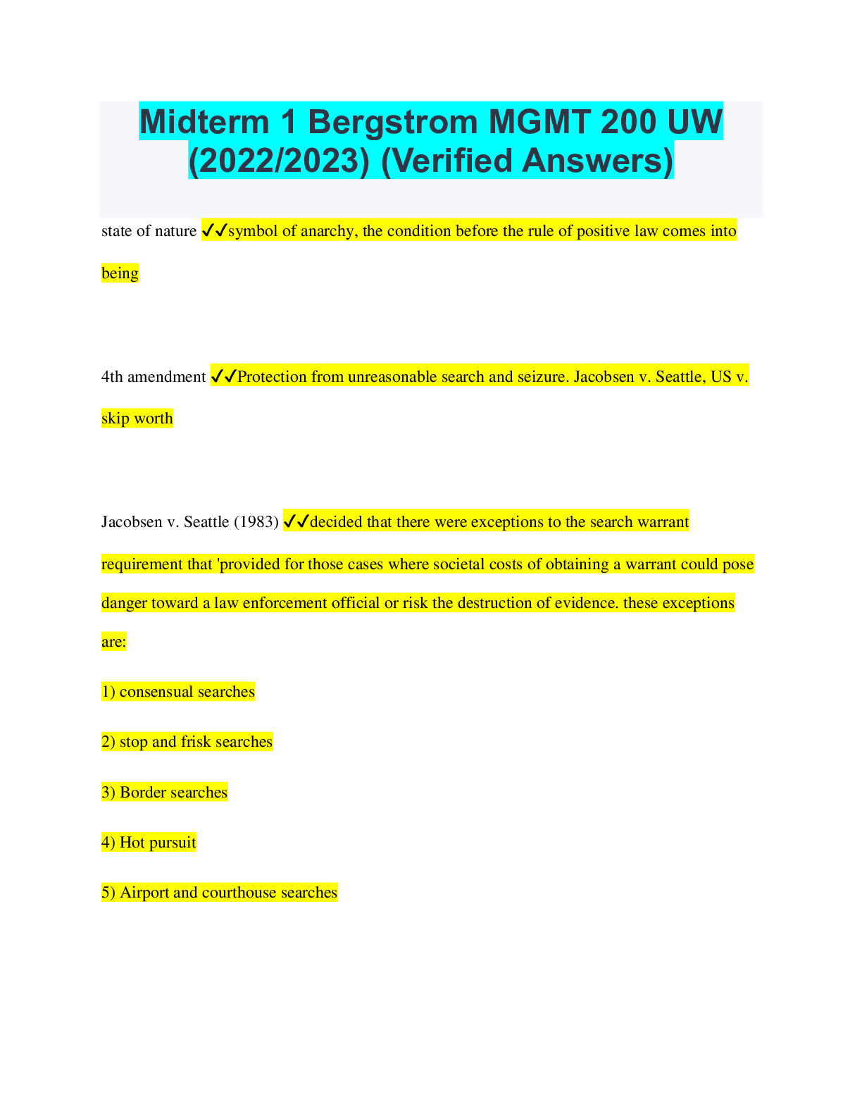 Management > QUESTIONS & ANSWERS > Midterm 1 Bergstrom MGMT 200 UW (2022/2023) (Verified Answers) (All)