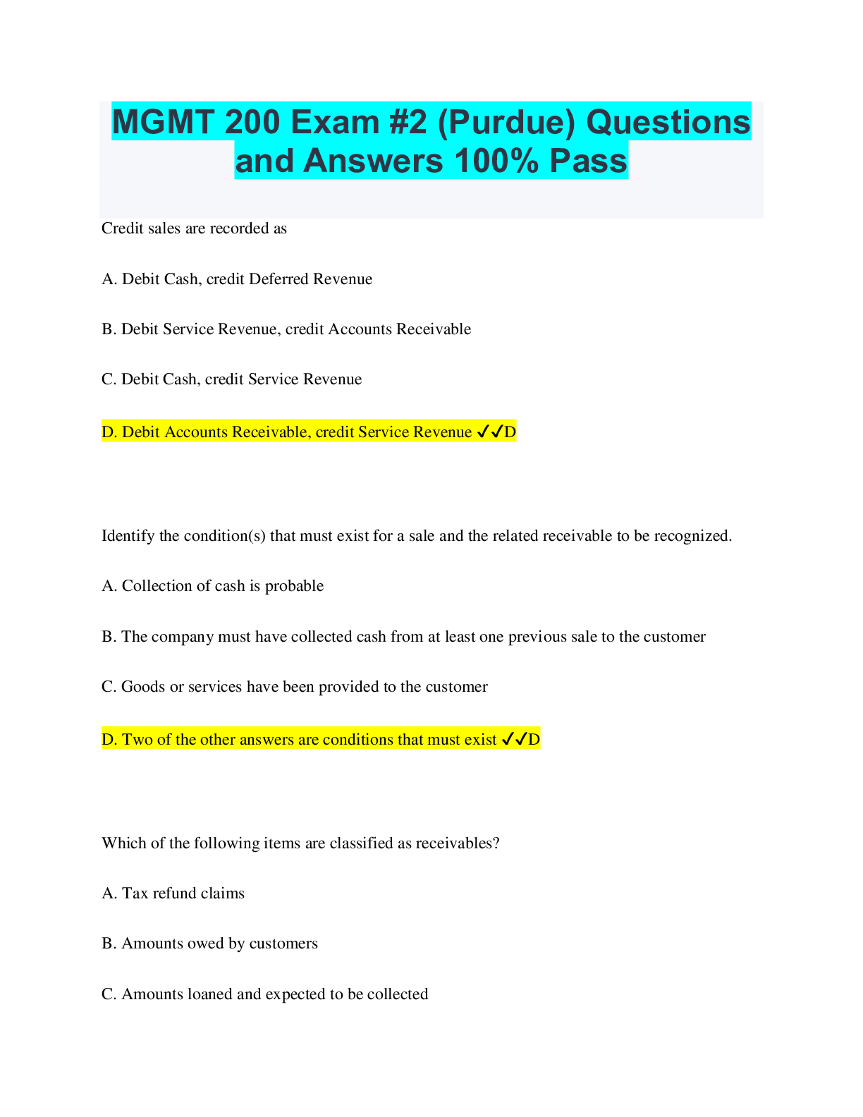 Management > QUESTIONS & ANSWERS > Purdue MGMT 200 Final Exam Questions and Answers Rated A+ (All)