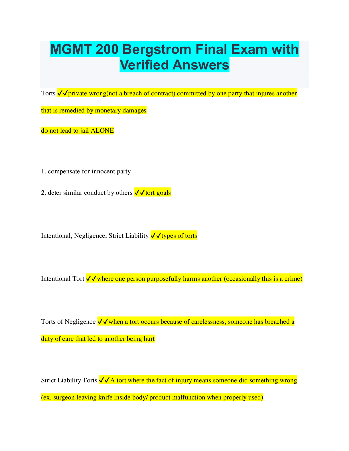 Management > QUESTIONS & ANSWERS > MGMT 200 Bergstrom Final Exam with Verified Answers (All)