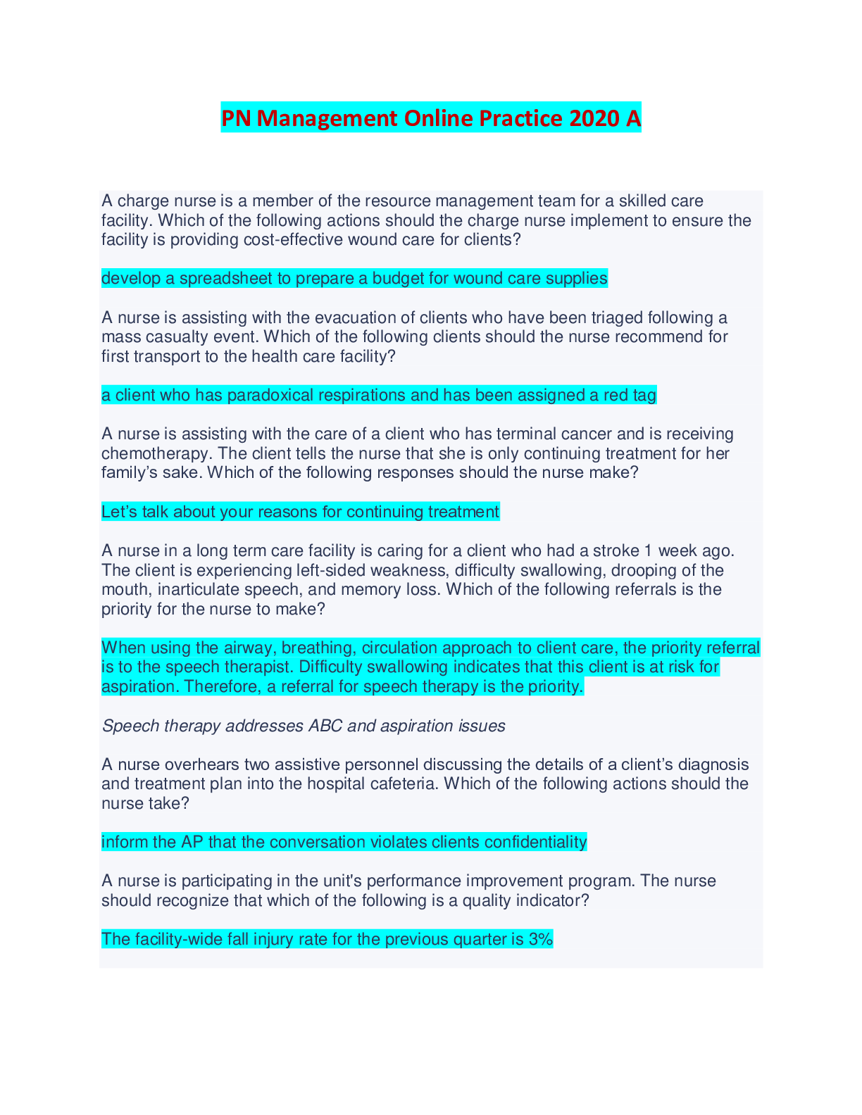 Management > EXAM > PN Management Online Practice 2020 A (All)