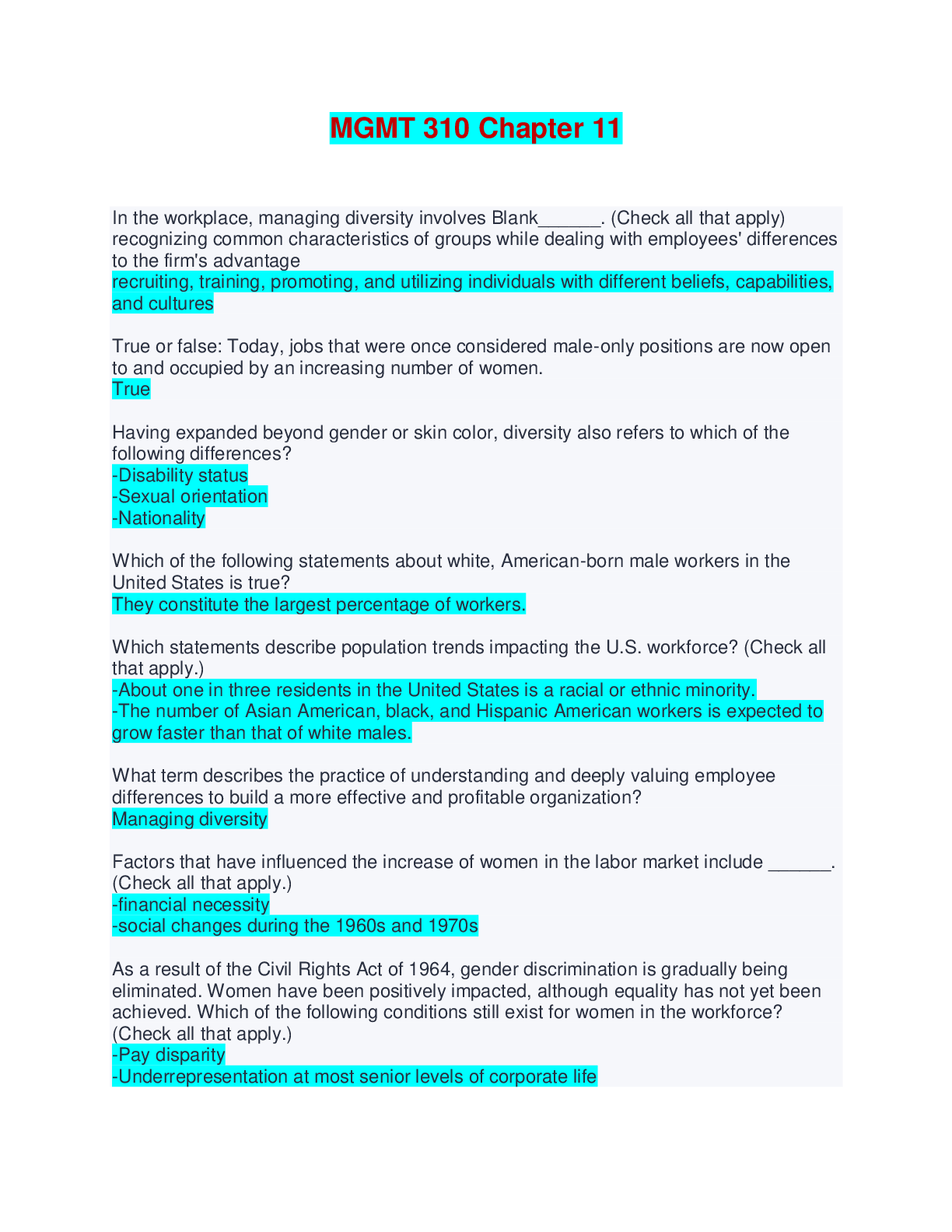 Management > EXAM > MGMT 310 Chapter 11 | Questions with 100% Correct Answers (All)