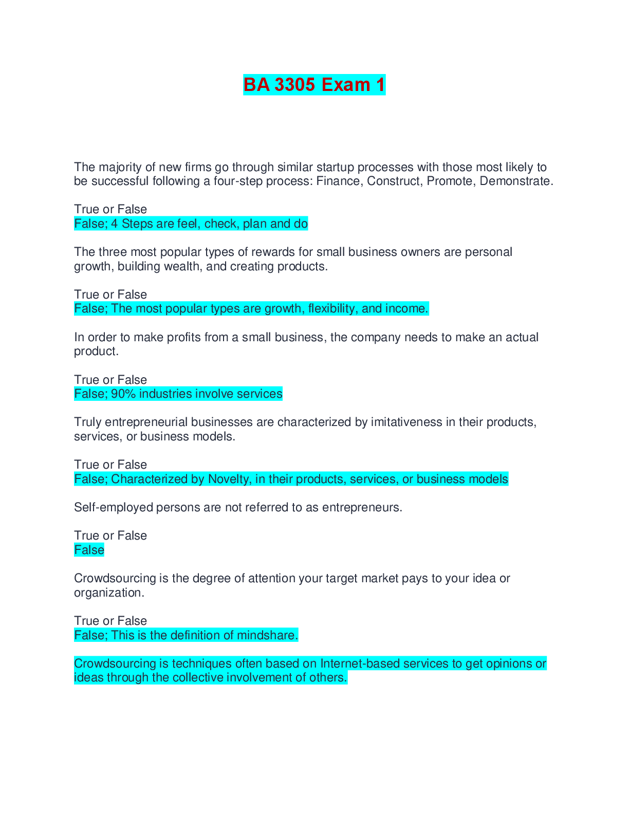 Management > EXAM > BA 3305 Exam 1 | Questions with Verified Answers (All)