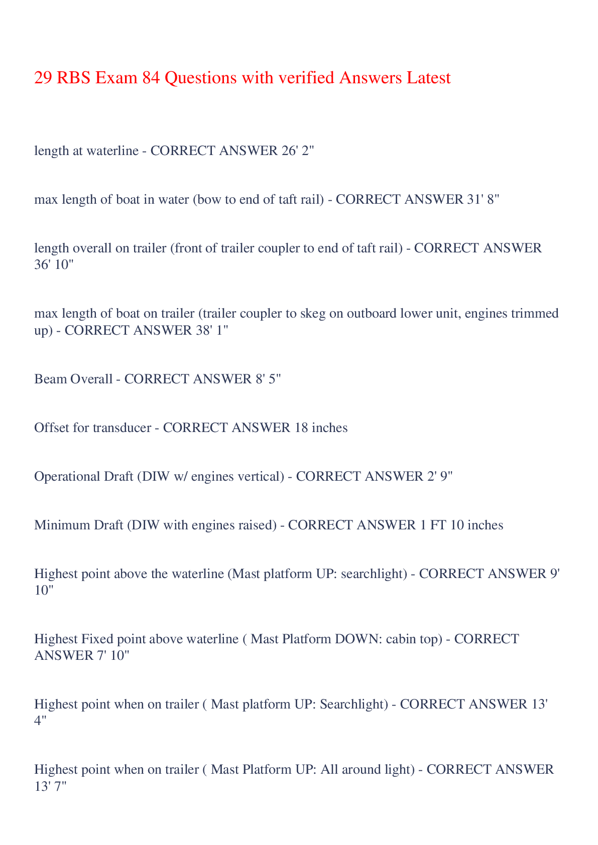Responsible Beverage Service > EXAM > 29' RBS Boat Crew Exam 44 Questions with Verified Answers,100% CORRECT (All)
