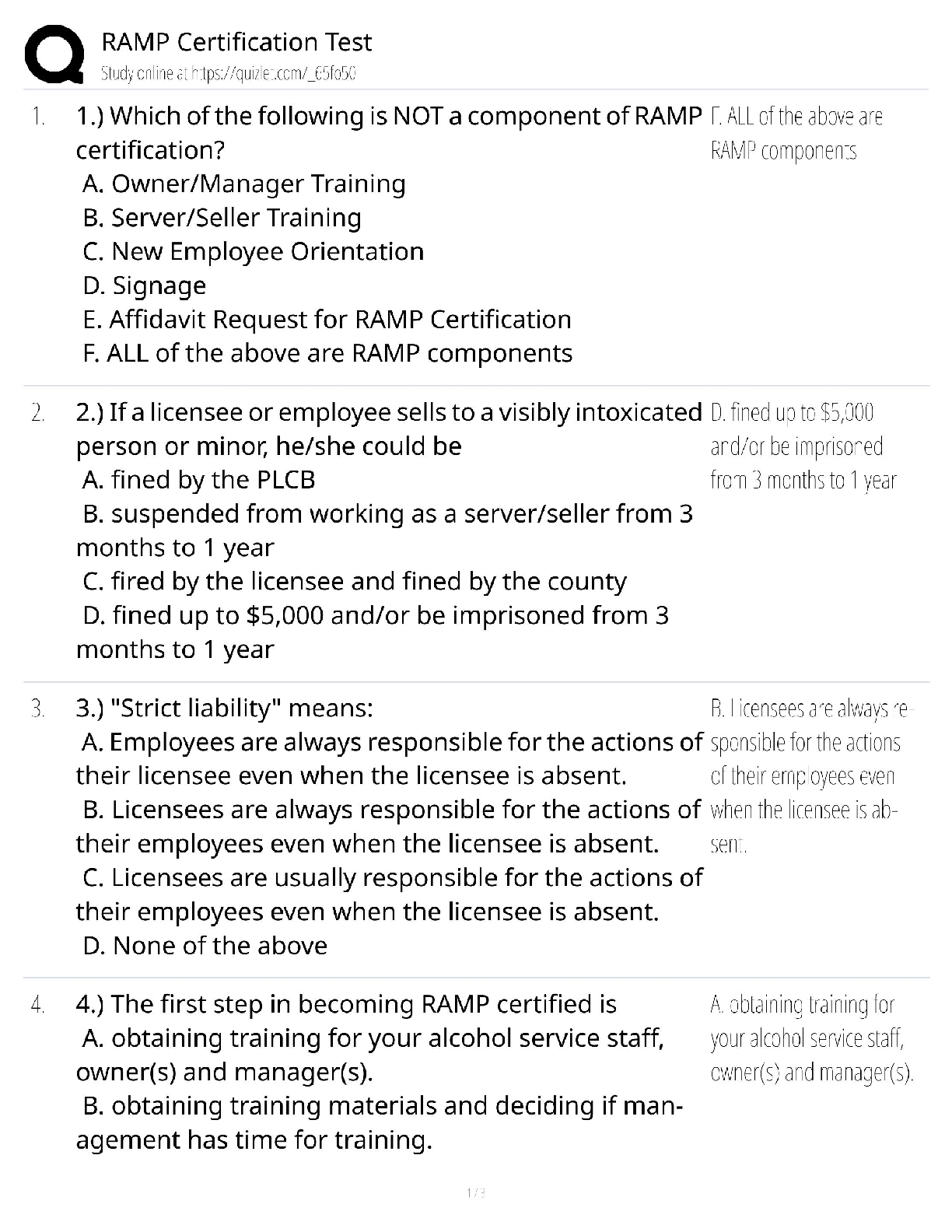 Responsible Beverage Service > QUESTIONS & ANSWERS > RAMP Certification Test Bank / Responsible Alcohol Management / 2025 Update / Score 100% (All)