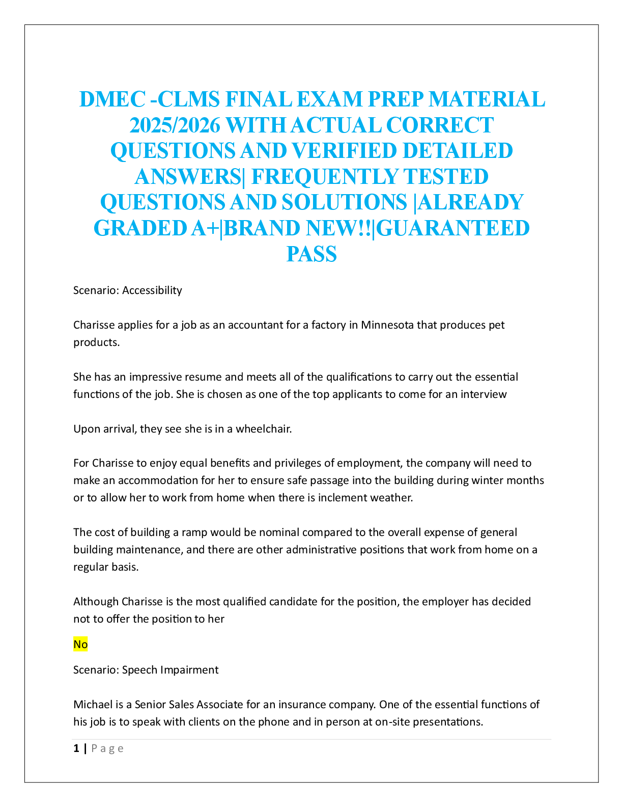 CST students with disabilities, Answered > EXAM > DMEC -CLMS FINAL EXAM PREP MATERIAL (All)