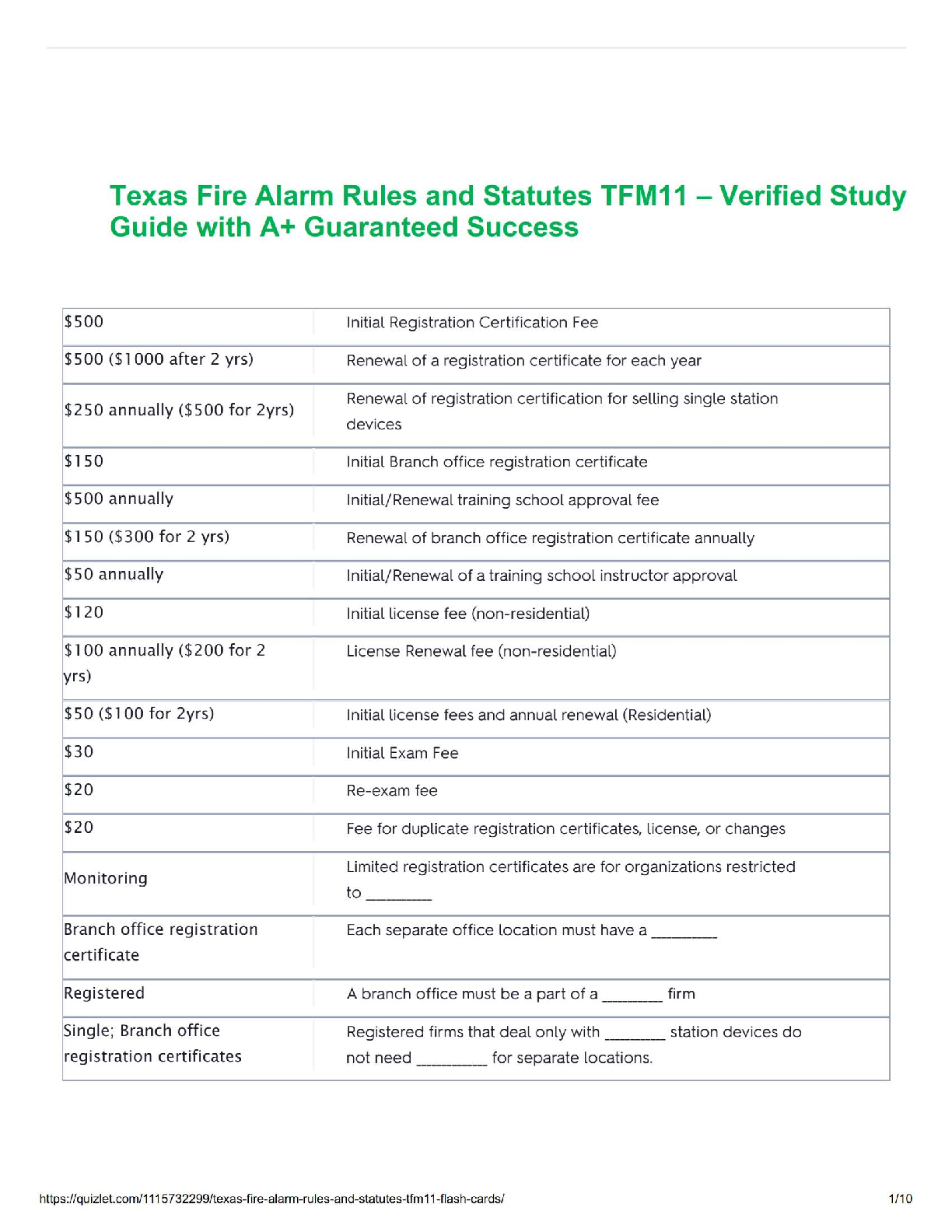QAC Landscape and Maintenance > STUDY GUIDE > Texas Fire Alarm Rules and Statutes TFM11 – Verified Study Guide with A+ Guaranteed Success (All)