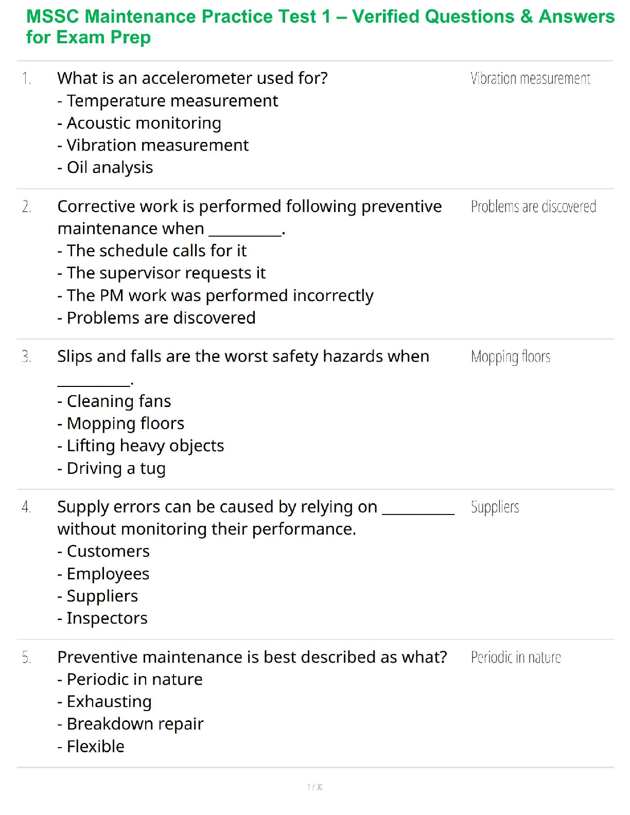 QAC Landscape and Maintenance > QUESTIONS & ANSWERS > MSSC Maintenance Practice Test 1 – Verified Questions & Answers for Exam Prep (All)