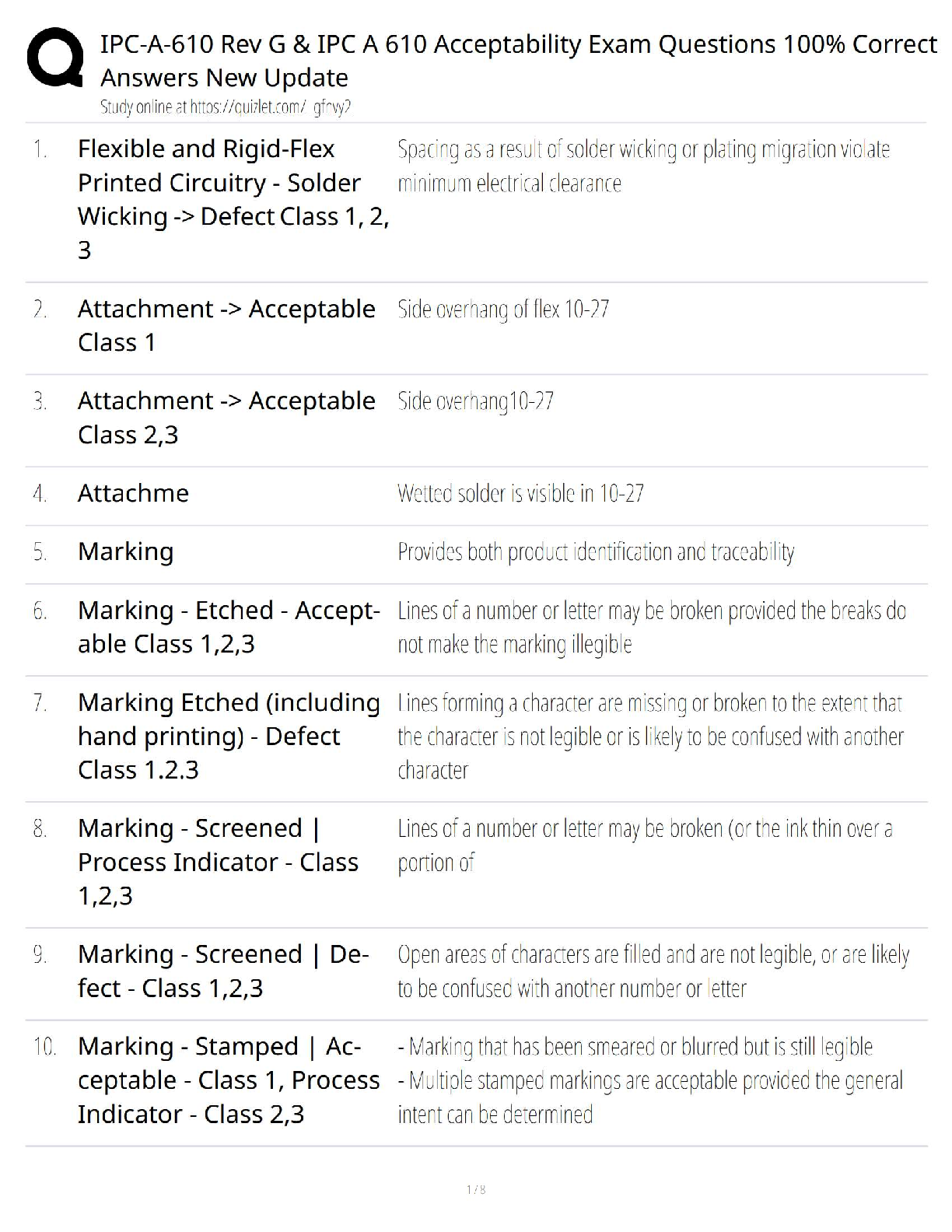 Computers and other technology > QUESTIONS & ANSWERS > IPC-A-610 Rev G / IPC A 610 Acceptability Exam 2025 / Practice Test Questions & Answers for Certification (All)
