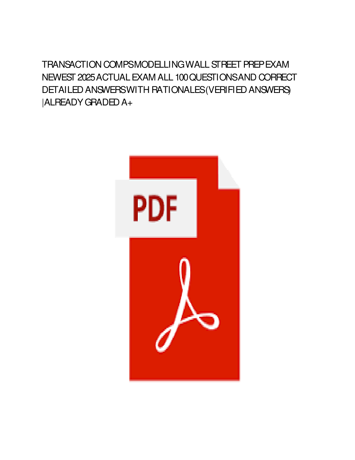 Computers and other technology > EXAM > TRANSACTION COMPS MODELLING WALL STREET PREP EXAM NEWEST 2025 ACTUAL EXAM ALL 100 QUESTIONS AND CORRECT DETAILED ANSWERS WITH RATIONALES (VERIFIED ANSWERS) |ALREADY GRADED A+ (All)