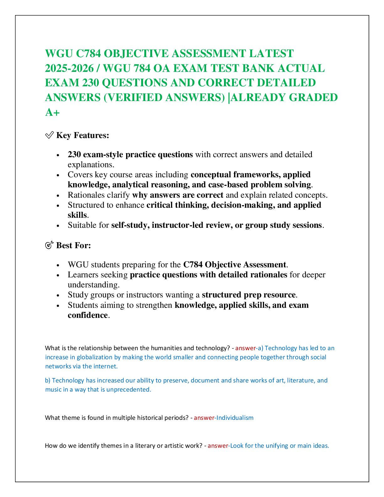 Computers and other technology > EXAM > WGU C784 OBJECTIVE ASSESSMENT LATEST 2025-2026 / WGU 784 OA EXAM TEST BANK ACTUAL EXAM 230 QUESTIONS AND CORRECT DETAILED ANSWERS (VERIFIED ANSWERS) |ALREADY GRADED A+ (All)