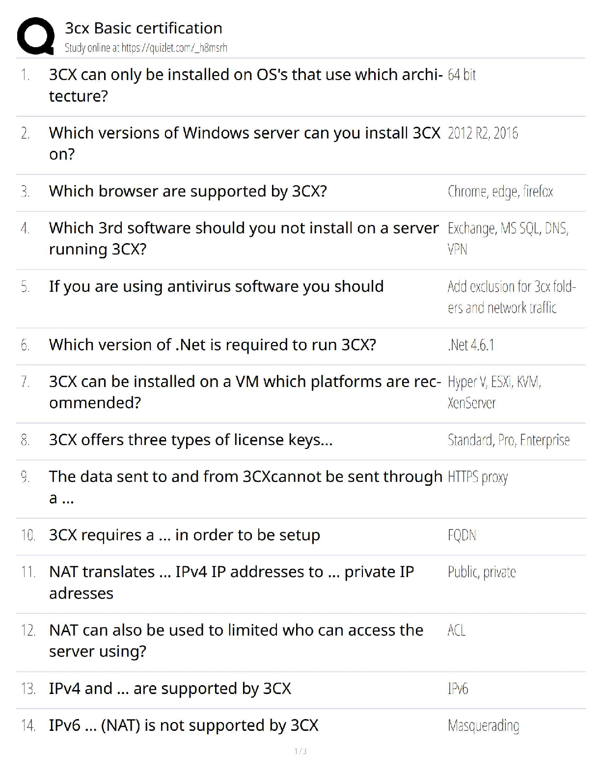 Computers and other technology > EXAM > 3cx Basic certification (All)