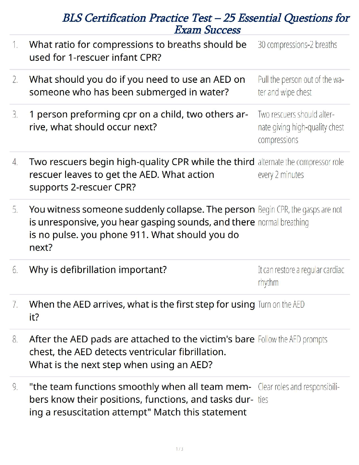 ASHI-CPR, AED, BFA > STUDY GUIDE > BLS Certification Practice Test – 25 Essential Questions for Exam Success (All)