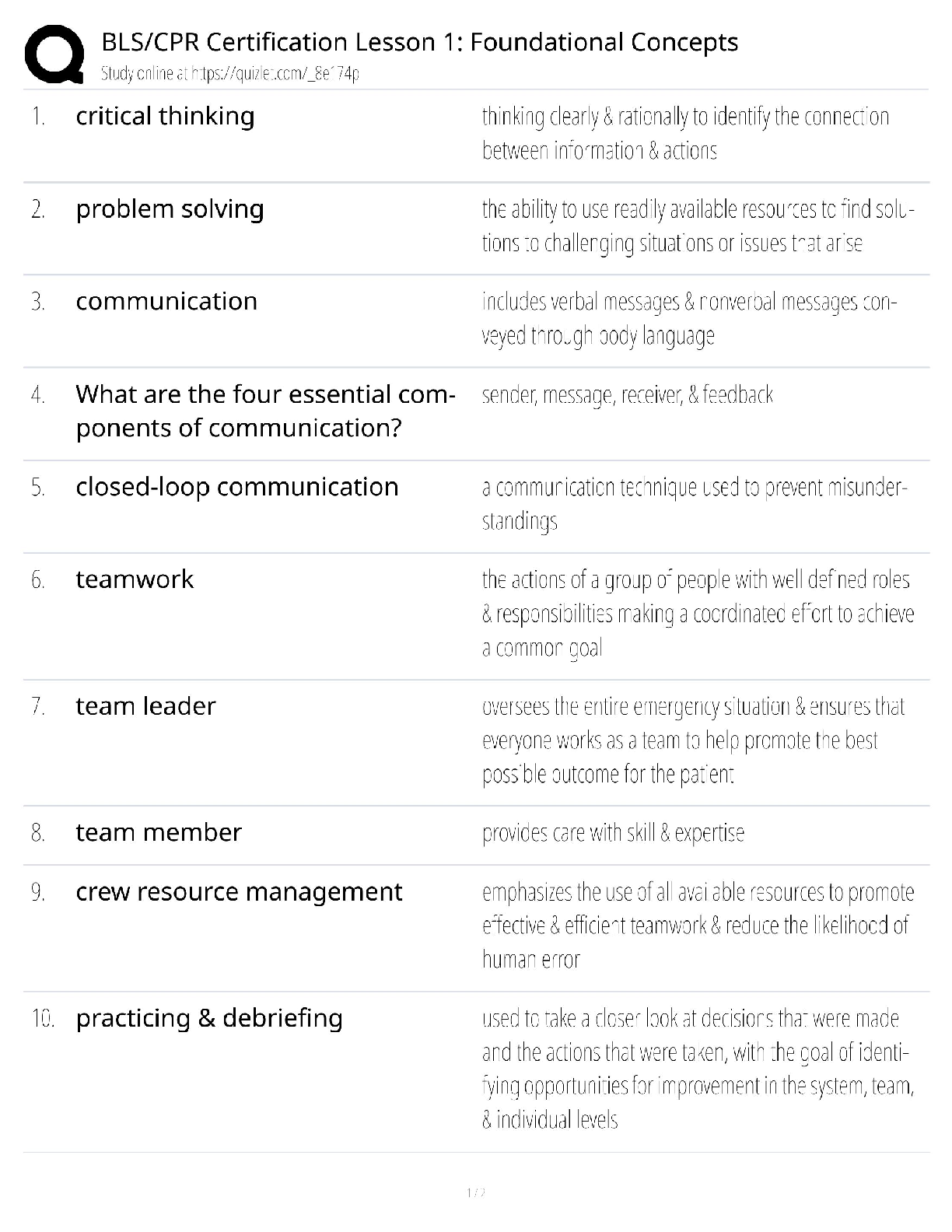 ASHI-CPR, AED, BFA > QUESTIONS & ANSWERS > BLS CPR Lesson 1 / Foundational Concepts Quiz / 2026 Update / Test Bank & Study Guide (All)