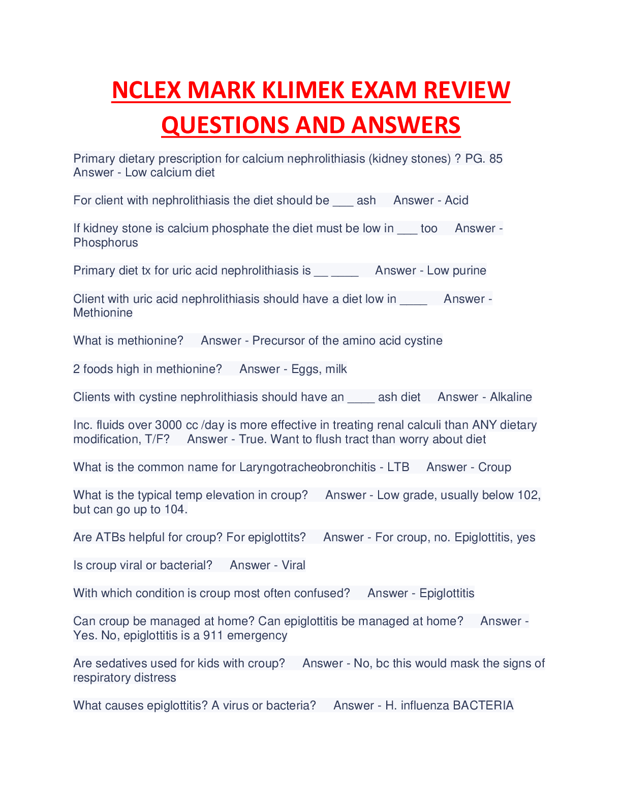 NCLEX RN > EXAMs > NCLEX MARK KLIMEK EXAM REVIEW FROM LECTURE/YELLOW BOOK 100% VERIFIED. (All)
