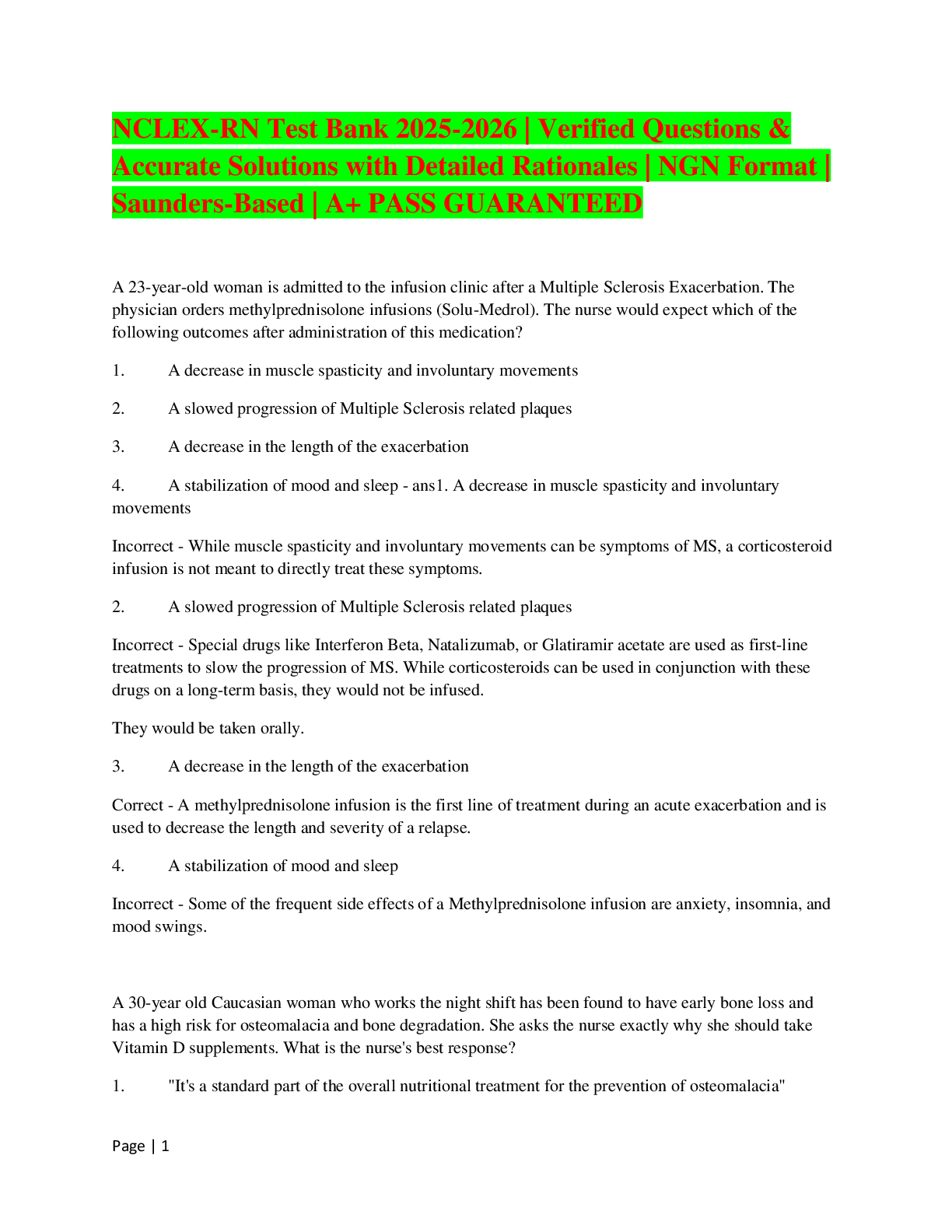 NCLEX RN > TEST BANKS > NCLEX -RN Test Bank 2025 -2026 | V Verified Questions & Accurate Solutions with Detailed Rationales | NGN Format | Saunders -Based | A+ PASS GUARANTEE (All)
