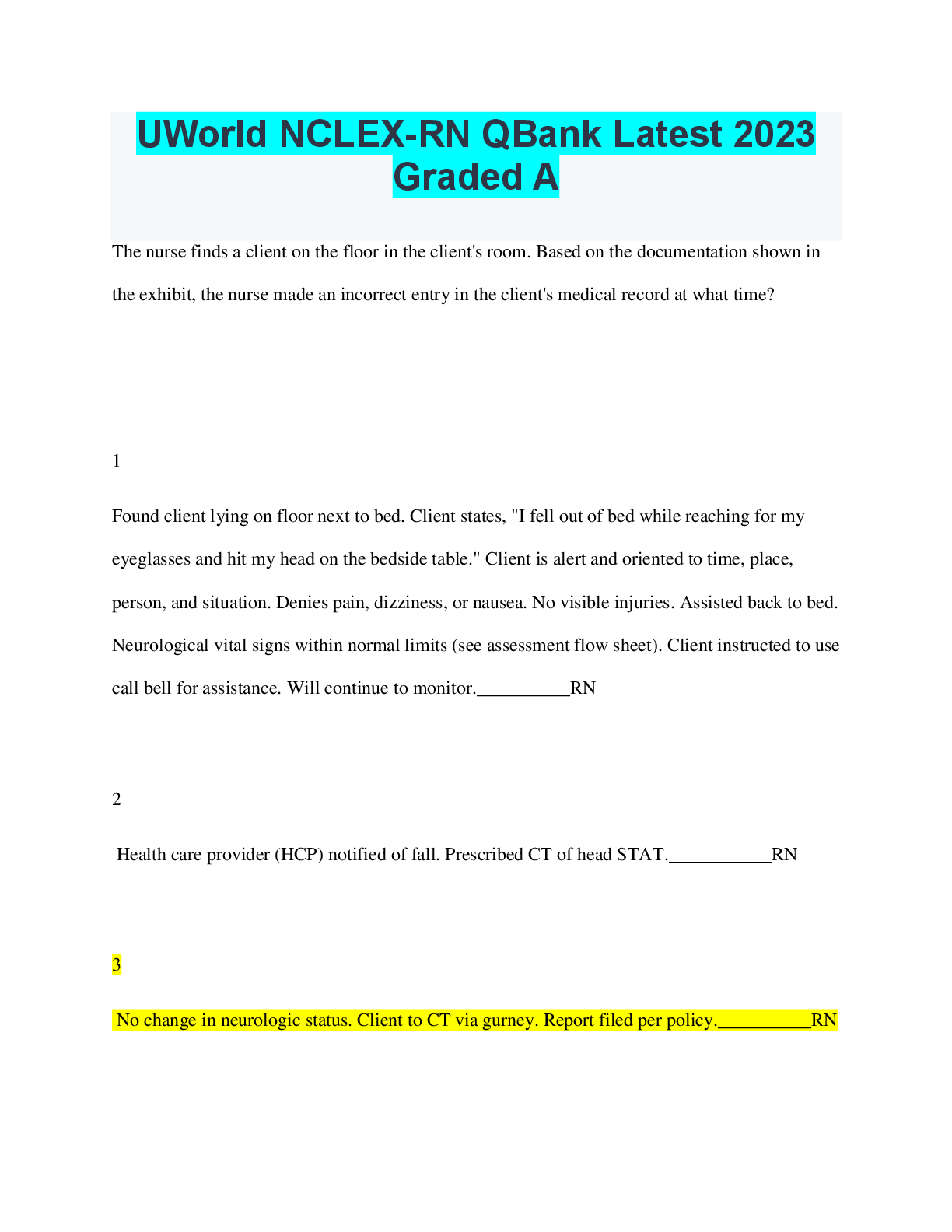 NCLEX RN > TEST BANKS > UWorld NCLEX-RN QBank Latest 2023 Graded A (All)