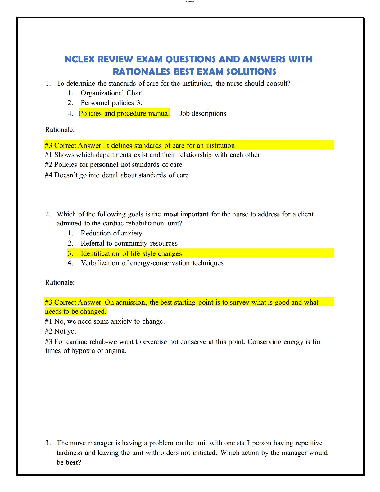 NCLEX RN > QUESTIONS and ANSWERS > NCLEX-PN 3000 Questions and Answers. Rationales provided. Rated A+ (All)