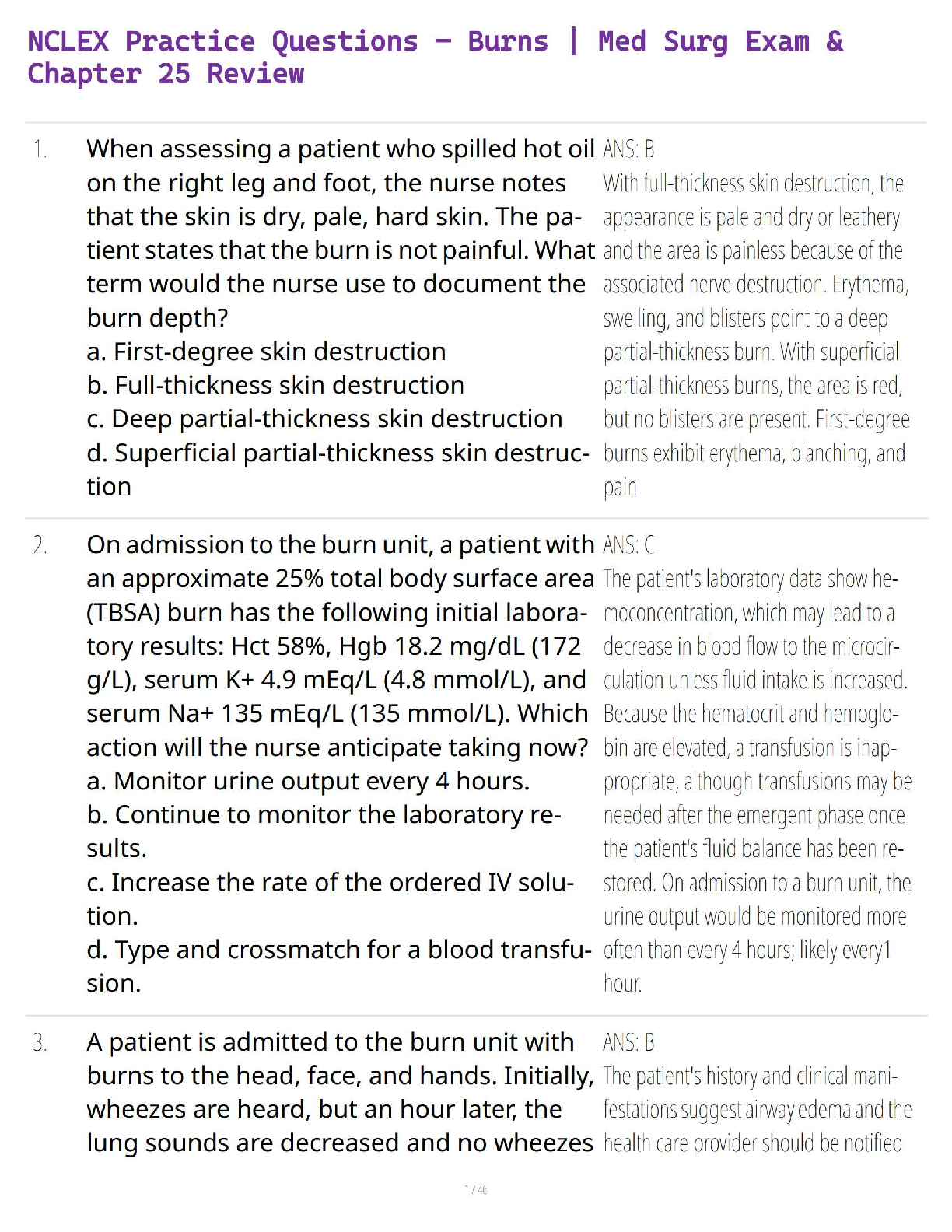 NCLEX RN > QUESTIONS and ANSWERS > NCLEX Practice Questions – Burns | Med Surg Exam & Chapter 25 Review (All)