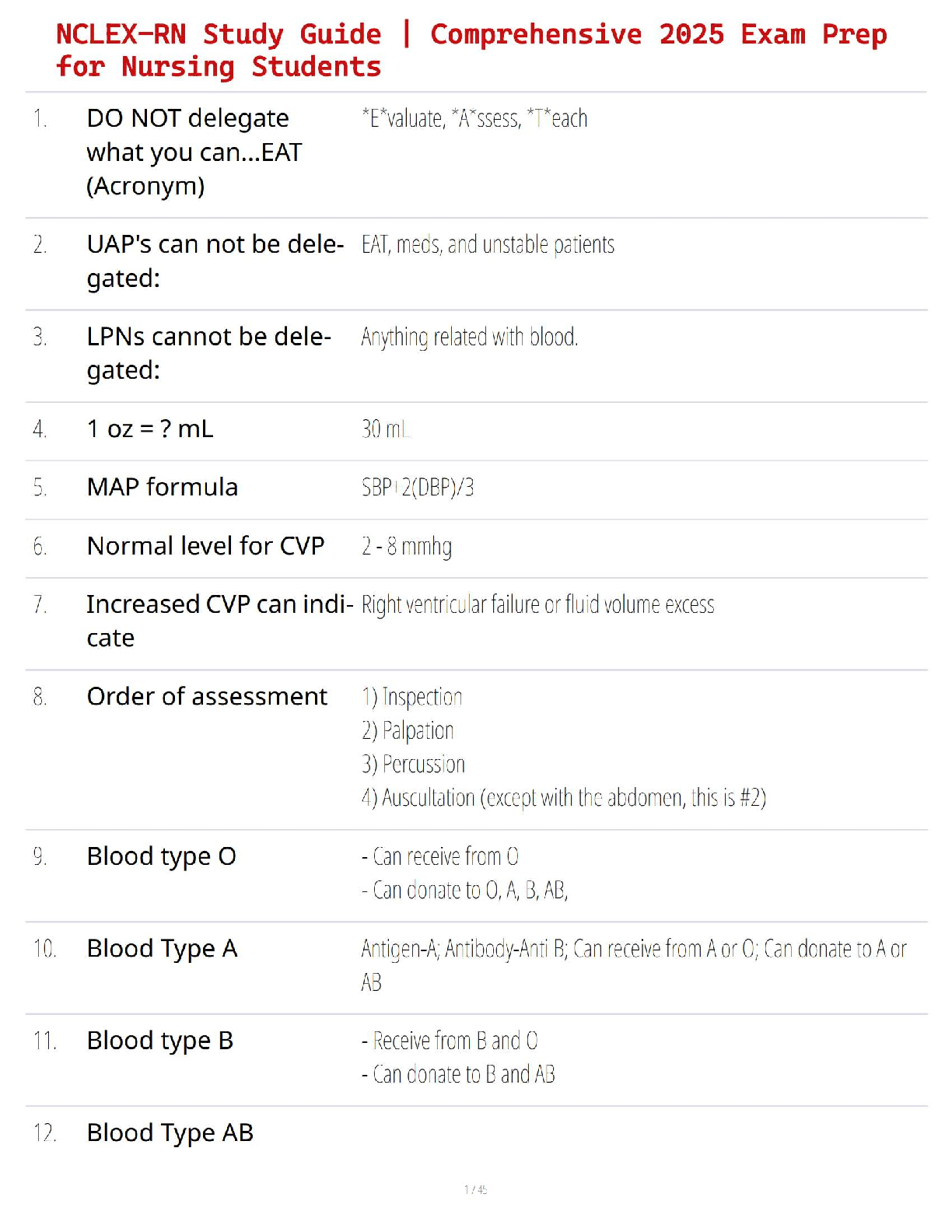 NCLEX RN > STUDY GUIDE > NCLEX-RN Study Guide | Comprehensive 2025 Exam Prep for Nursing Students (All)