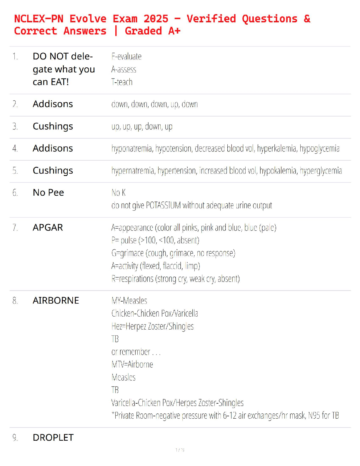 NCLEX RN > STUDY GUIDE > NCLEX-PN Evolve Exam 2025 – Verified Questions & Correct Answers | Graded A+ (All)