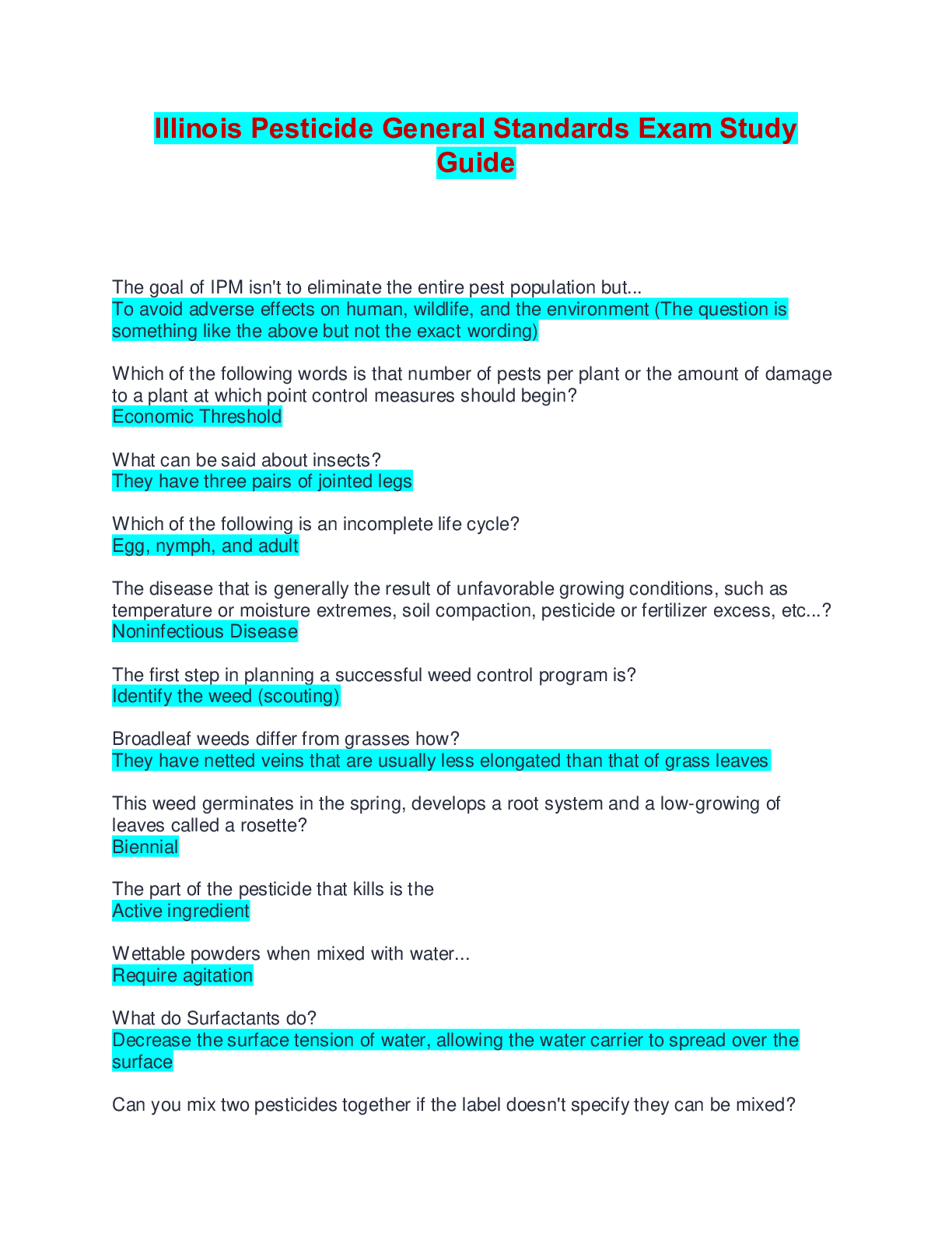 Pesticide License > EXAM > Illinois Pesticide General Standards Exam Study Guide | Q & A (All)
