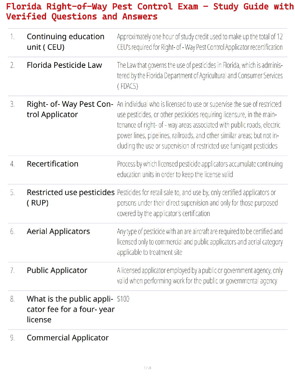 Pesticide License > STUDY GUIDE > Florida Right-of-Way Pest Control Exam – Study Guide with Verified Questions and Answers (All)