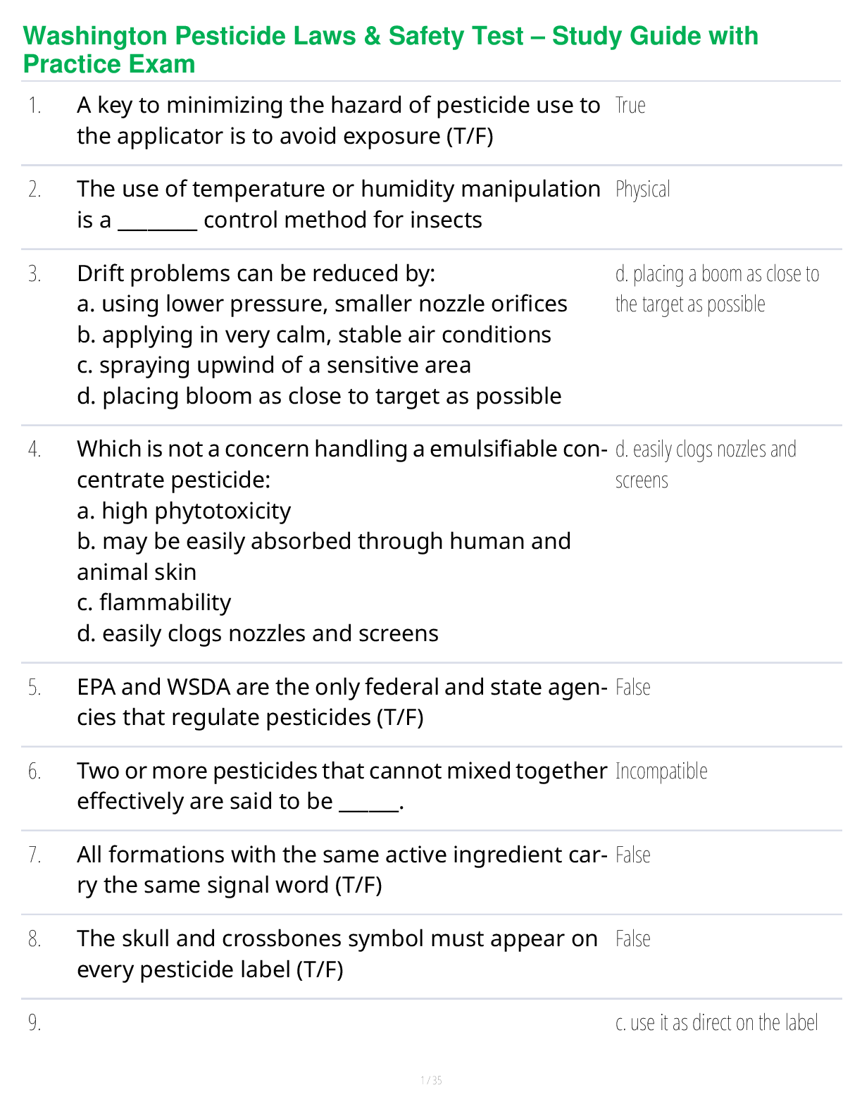 Pesticide License > STUDY GUIDE > Washington Pesticide Laws & Safety Test – Study Guide with Practice Exam (All)