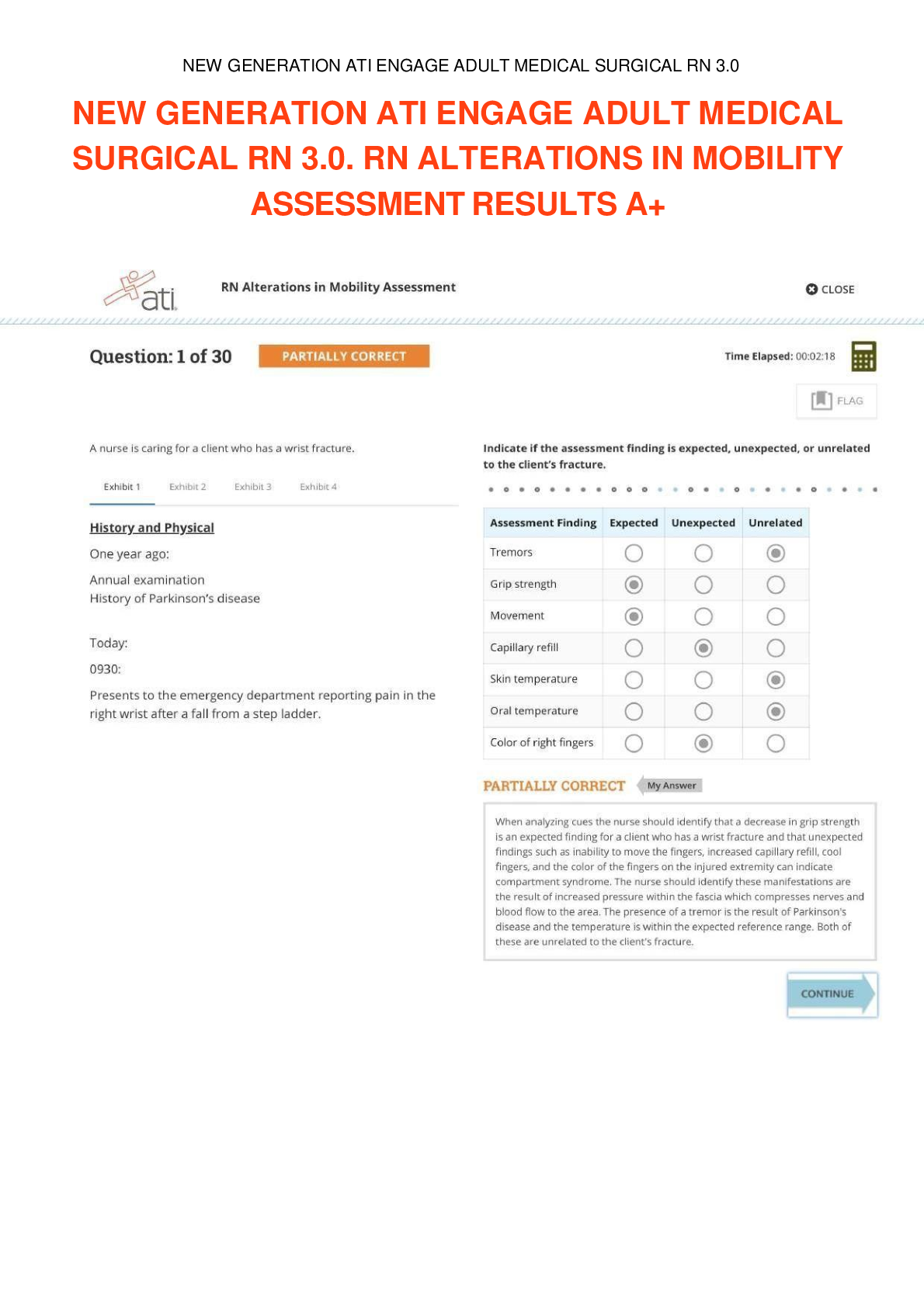 ATI MED SURGE > QUESTIONS & ANSWERS > NEW GENERATION ATI ENGAGE ADULT MEDICAL SURGICAL RN 3.0. RN ALTERATIONS IN MOBILITY ASSESSMENT RESULTS A+ (All)