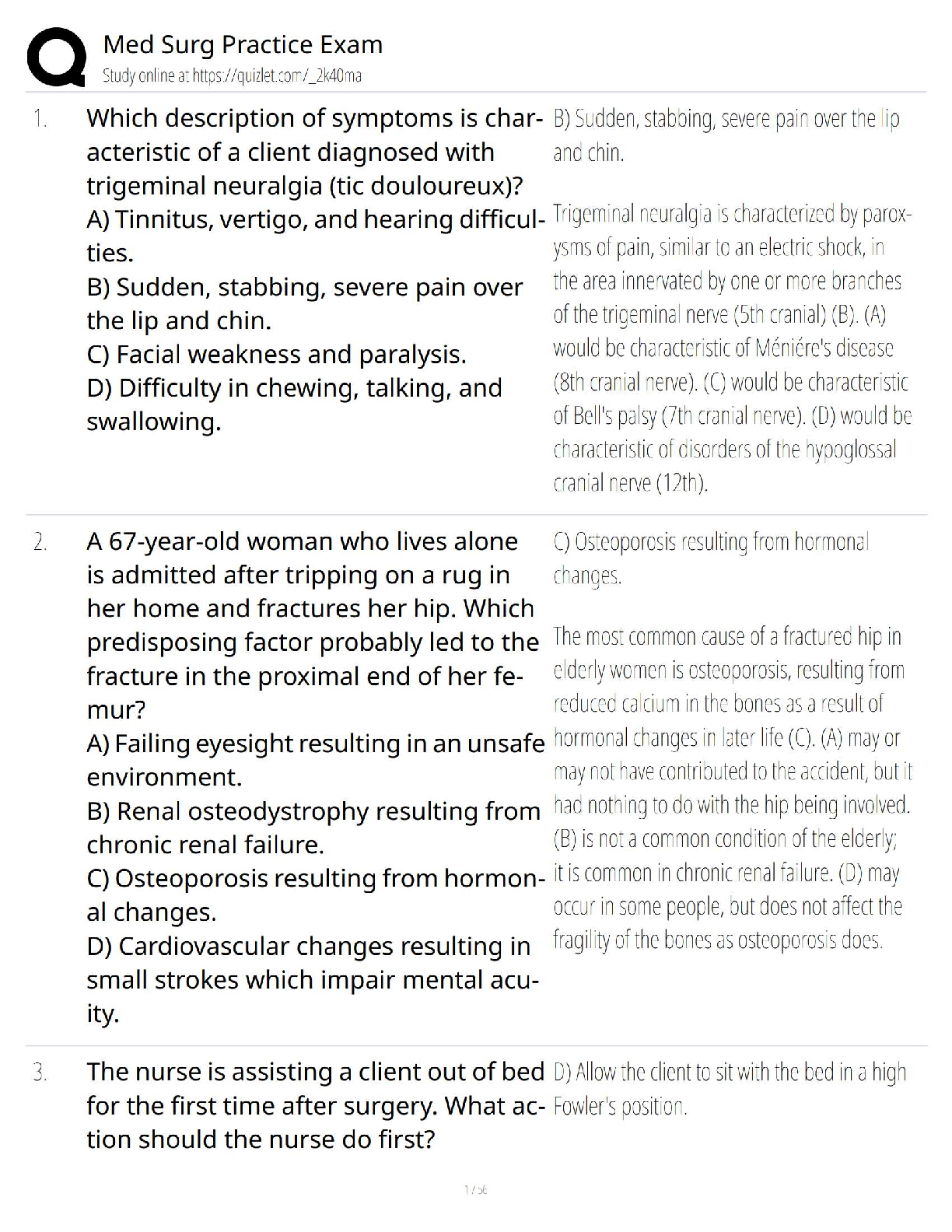 ATI MED SURGE > QUESTIONS & ANSWERS > Med Surg Practice Exam / Test Bank & Study Guide / Score 100% / 2025 Update (All)