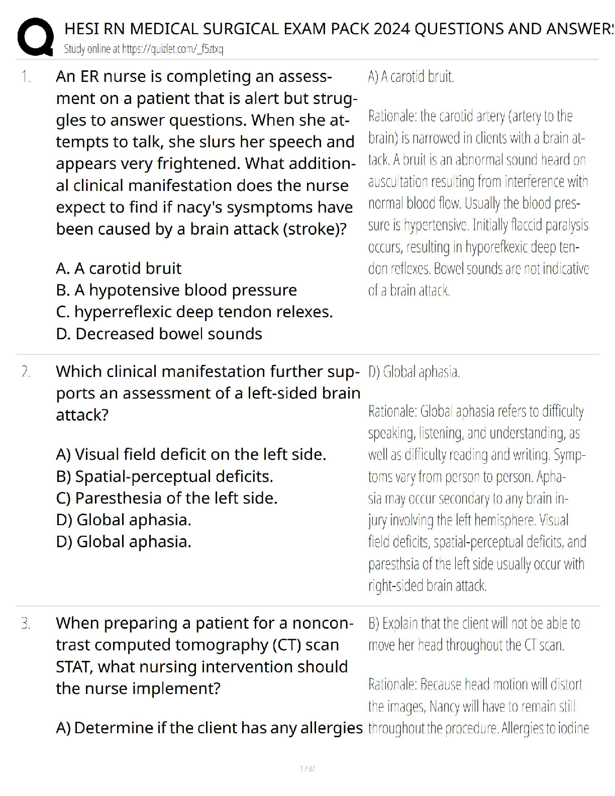 ATI MED SURGE > QUESTIONS & ANSWERS > HESI RN Medical Surgical Exam Pack 2024 / Questions and Answers / Test Bank – Score 100% (All)