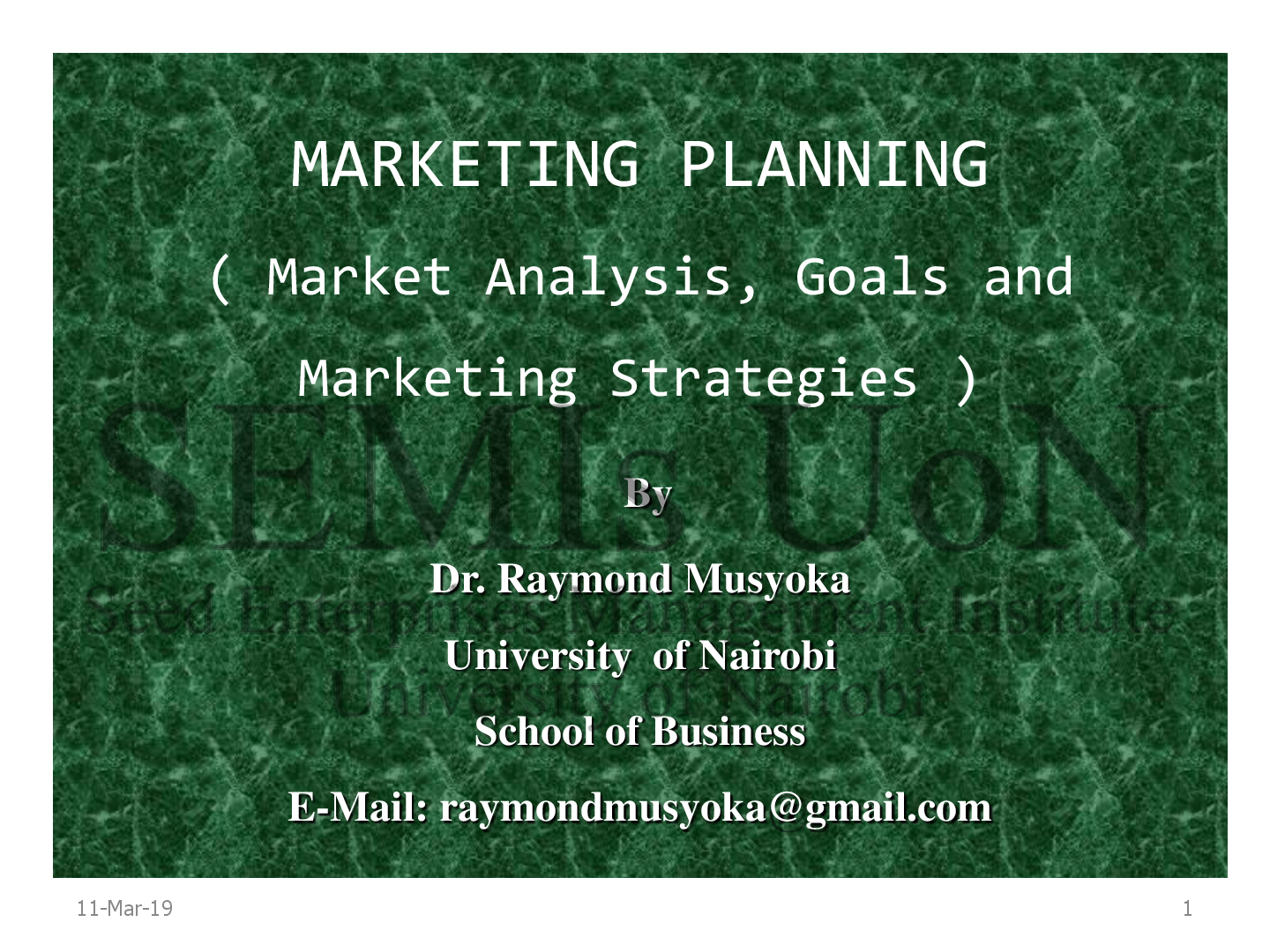 Marketing > LECTURE SLIDES/NOTES > Musyoka Marketing Planning ( Market Analysis, Goals And Marketing Strategies (All)