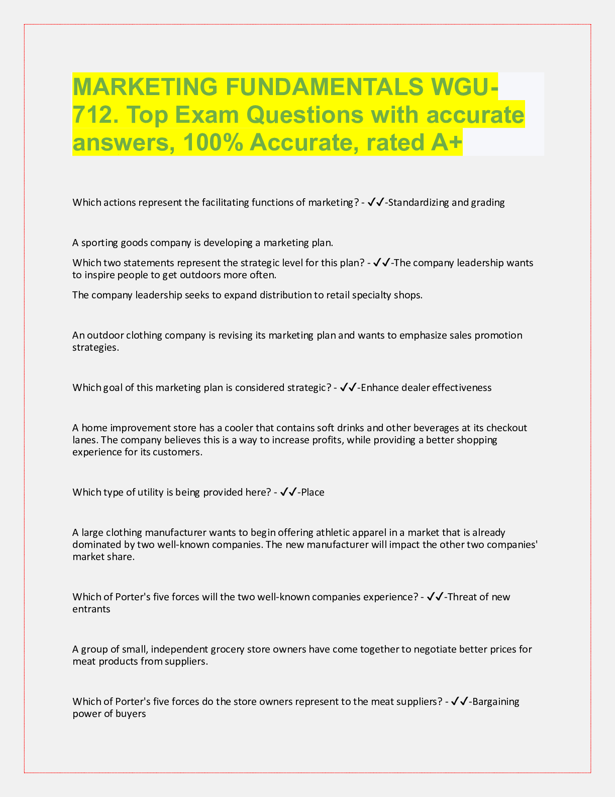 Marketing > QUESTIONS & ANSWERS > Marketing Fundamentals ( WGU C712), Top exam questions with accurate answers, rated A (All)