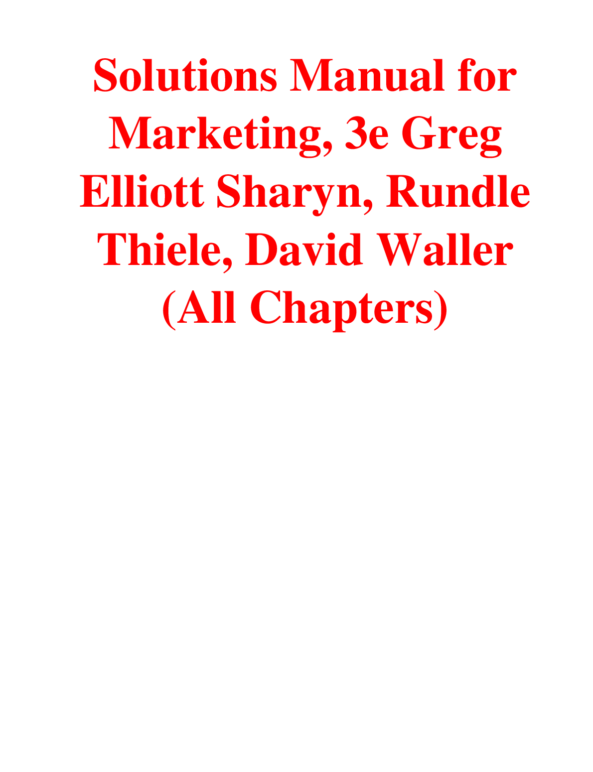 Marketing > SOLUTIONS MANUAL > Solutions Manual For Marketing, 3rd Edition By Greg Elliott Sharyn, Rundle Thiele, David Waller (All)