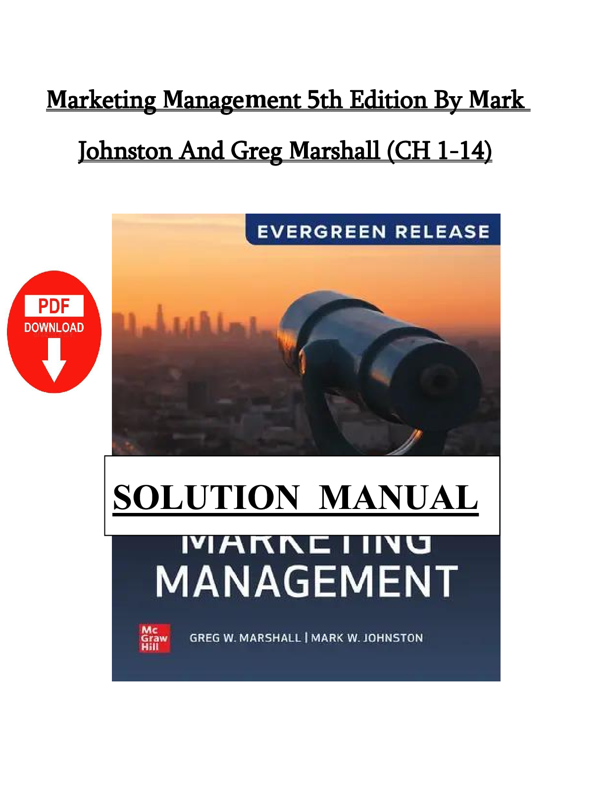Marketing > SOLUTIONS MANUAL > Solution Manual for Marketing Management 5th Edition by Mark Johnston Greg Marshall Chapters 1-14 (All)