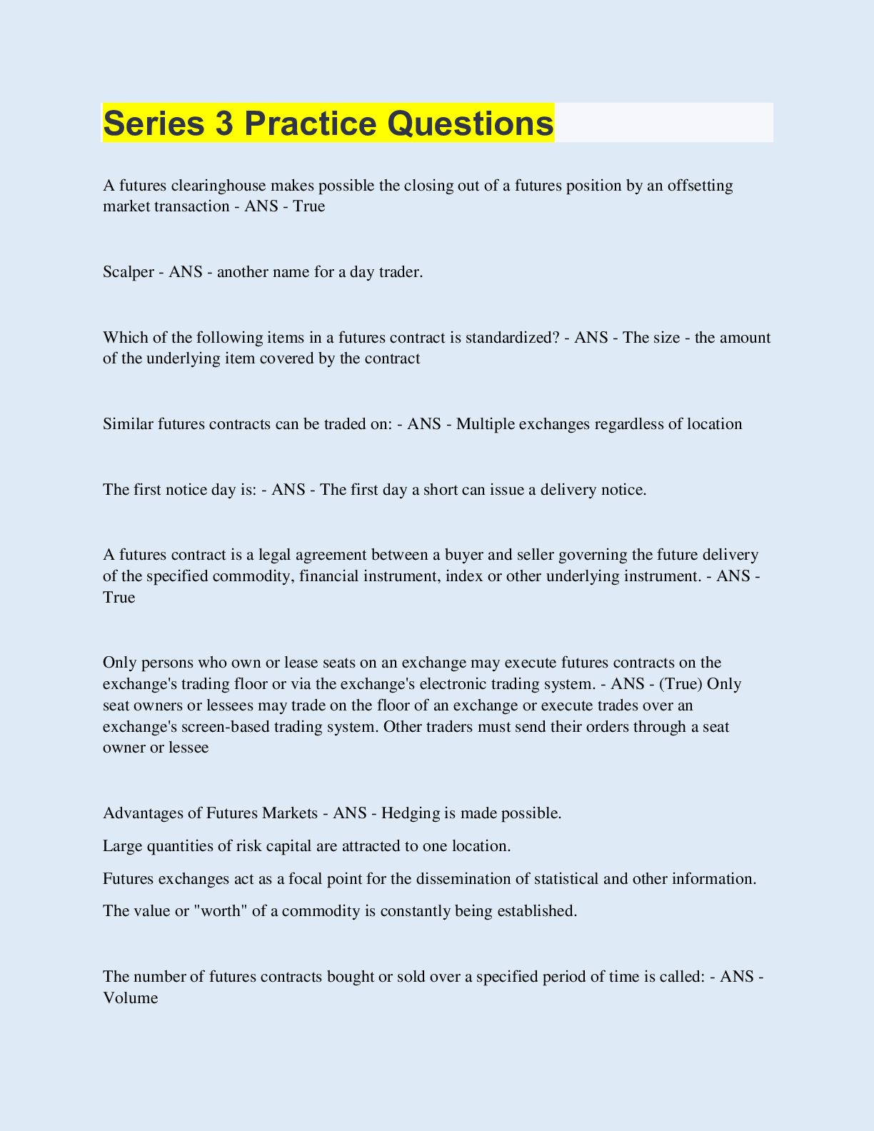 Marketing > QUESTIONS & ANSWERS > Series 3 Practice Questions (All)