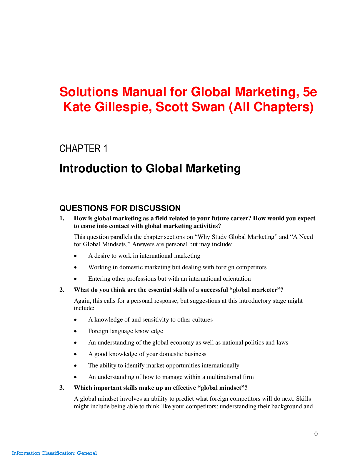 Marketing > SOLUTIONS MANUAL > Global Marketing, 5e Kate Gillespie, Scott Swan (Solutions Manual) (All)
