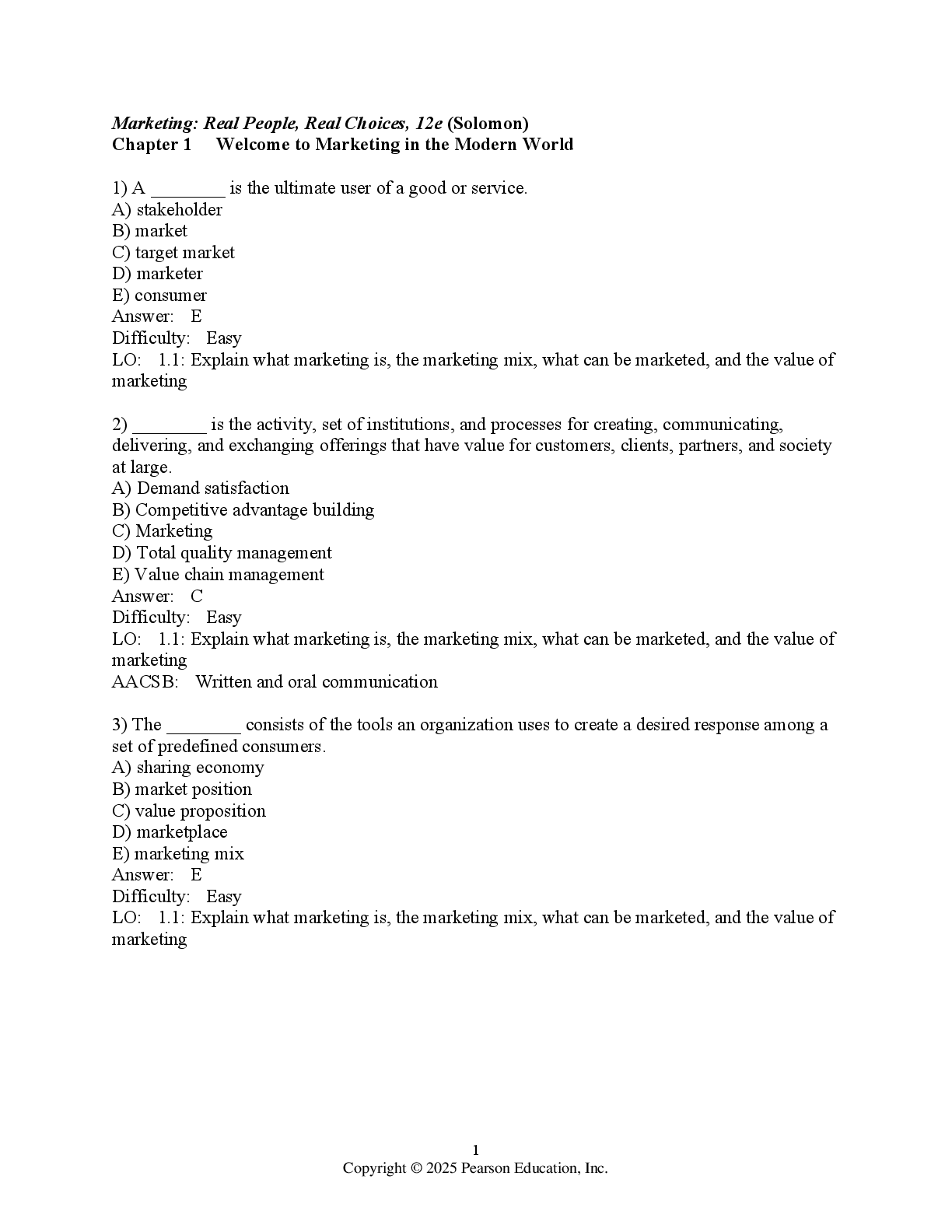 Marketing > TEST BANKS > Test Bank for Marketing Real People, Real Choices, 12th edition Michael R. Solomon Greg W. Marshall Elnora W. Stuart Janée N. Burkhalter Brad Carlson (All)