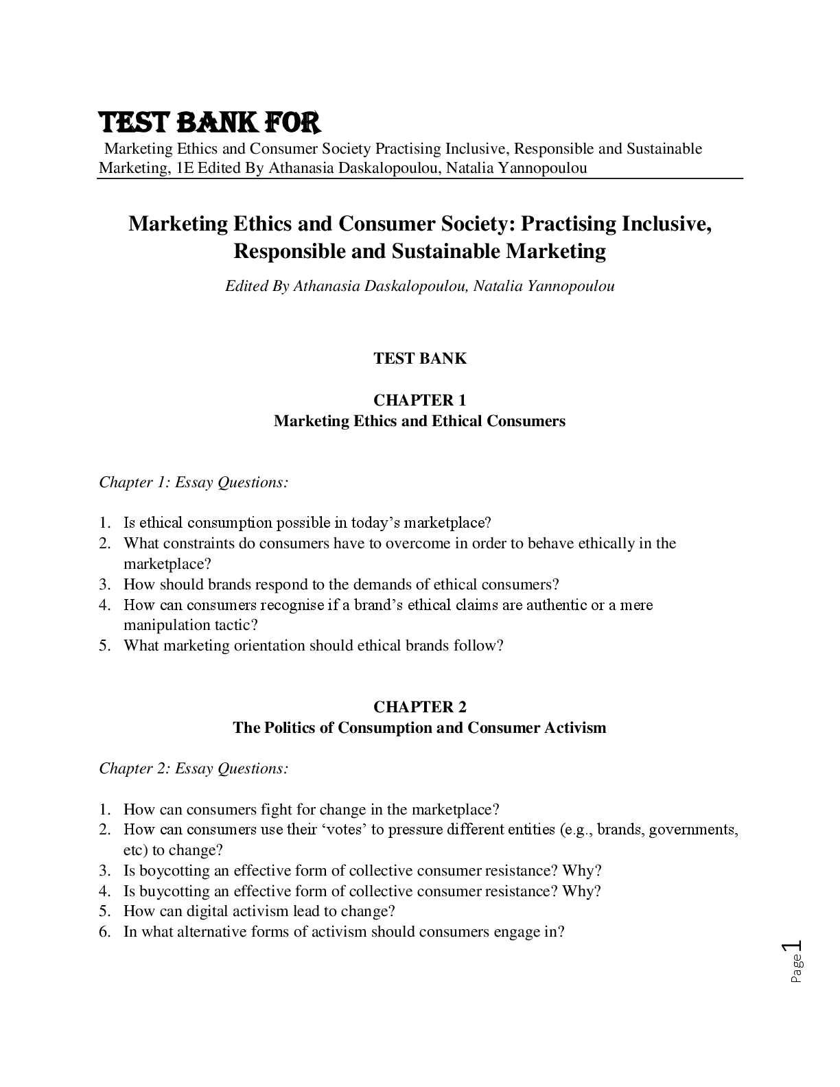 Marketing > TEST BANKS > Test Bank For Marketing Ethics and Consumer Society Practising Inclusive, Responsible and Sustainable Marketing, 1E Edited By Athanasia Daskalopoulou, Natalia Yannopoulou (All)