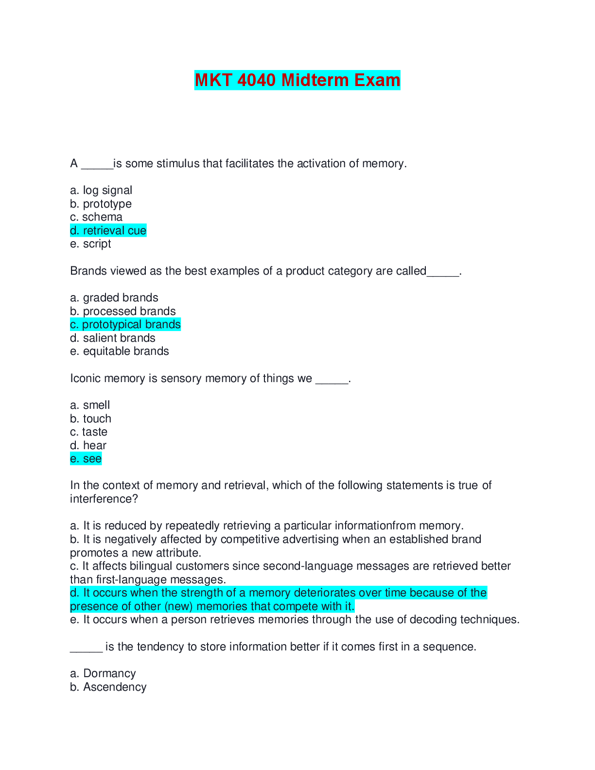 Marketing > EXAM > MKT 4040 Midterm Exam | Questions with Verified Answers (All)