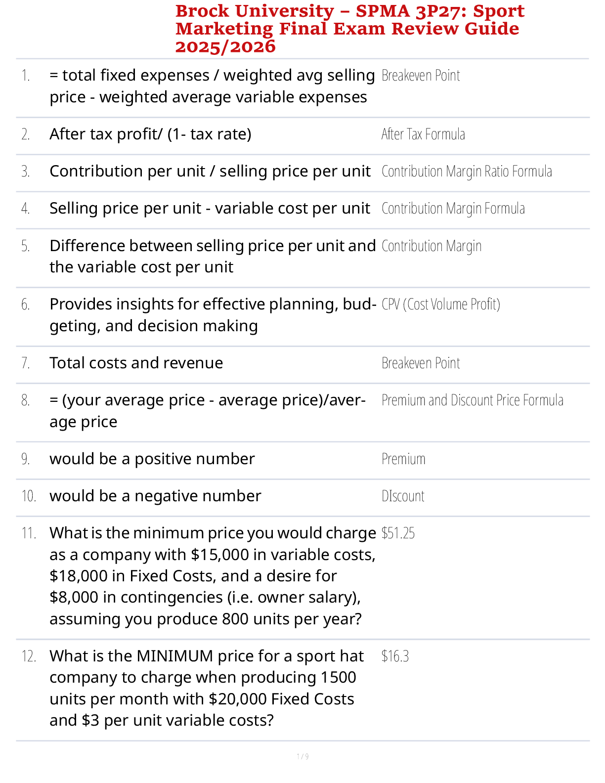 Marketing > STUDY GUIDE > Brock University – SPMA 3P27: Sport Marketing Final Exam Review Guide 2025/2026 (All)