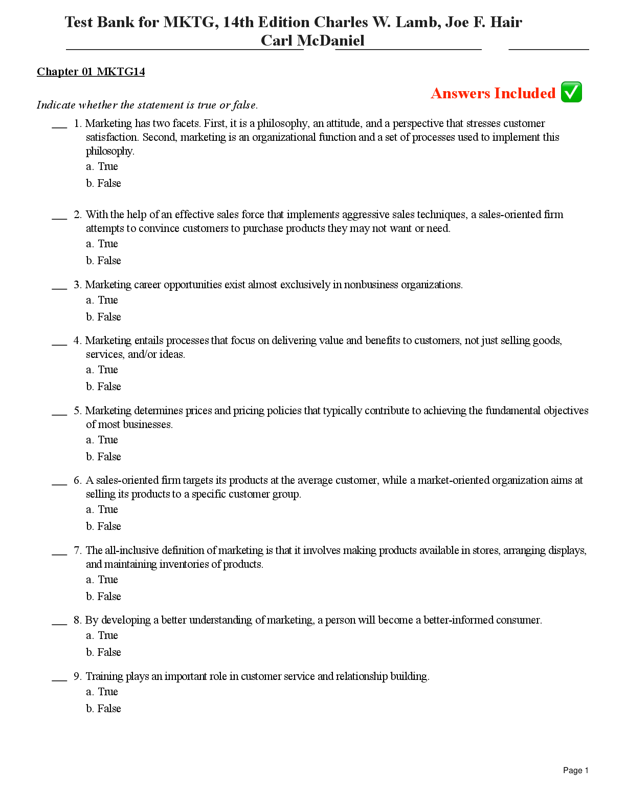 Marketing > TEST BANKS > Test Bank for MKTG, 14th Edition Charles W. Lamb, Joe F. Hair Carl McDaniel A+ (All)