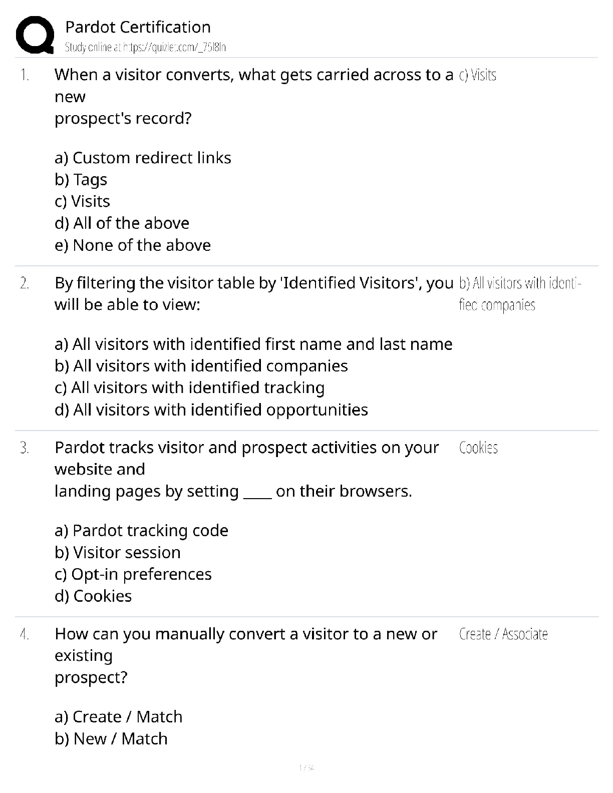 Marketing > QUESTIONS & ANSWERS > Pardot Certification / Salesforce Marketing Associate / 2025 Exam Guide / Score 100% Study Set & Test Bank (All)