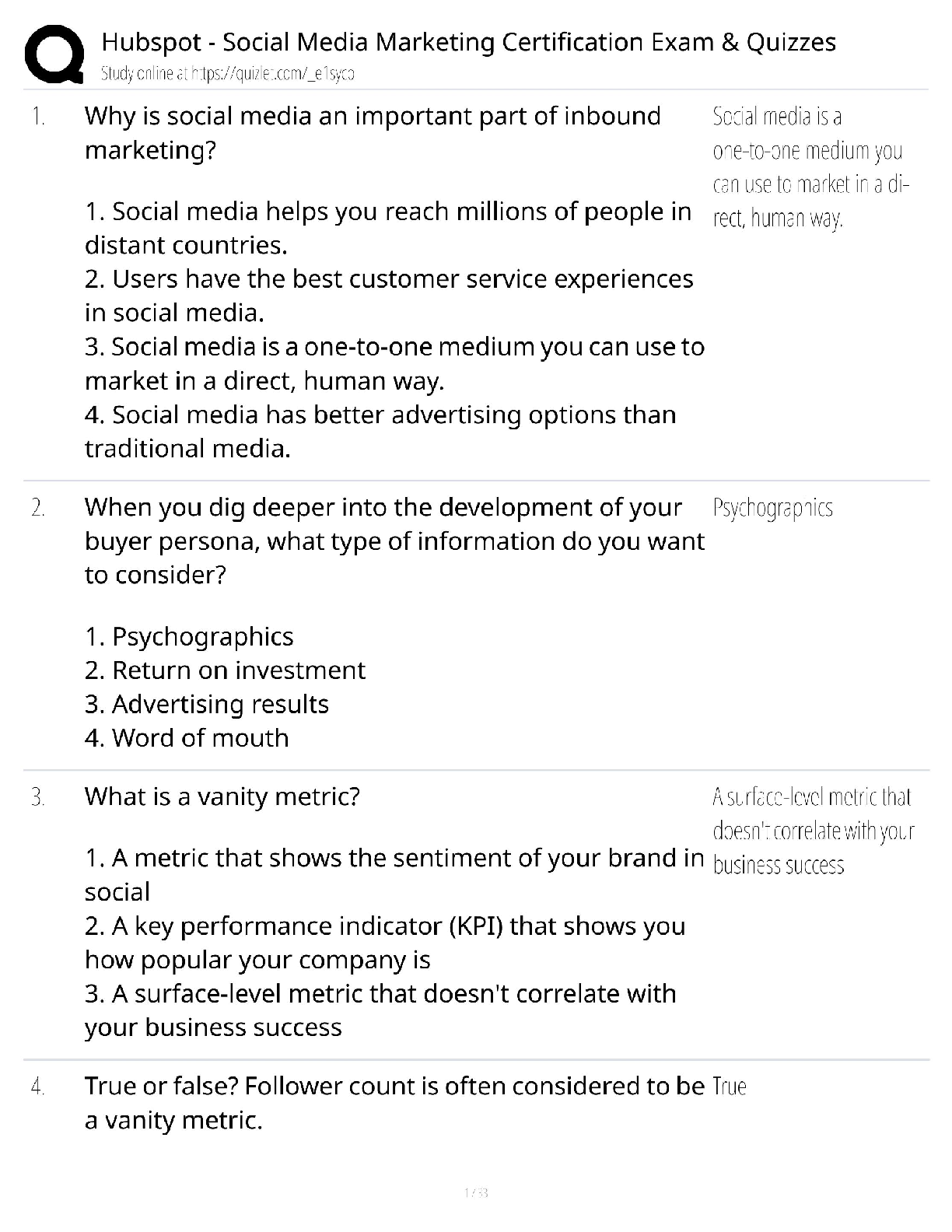 Marketing > QUESTIONS & ANSWERS > HubSpot Social Media Marketing Certification / Exam & Quiz Prep / 2026 Update / Practice Test & Answers (All)