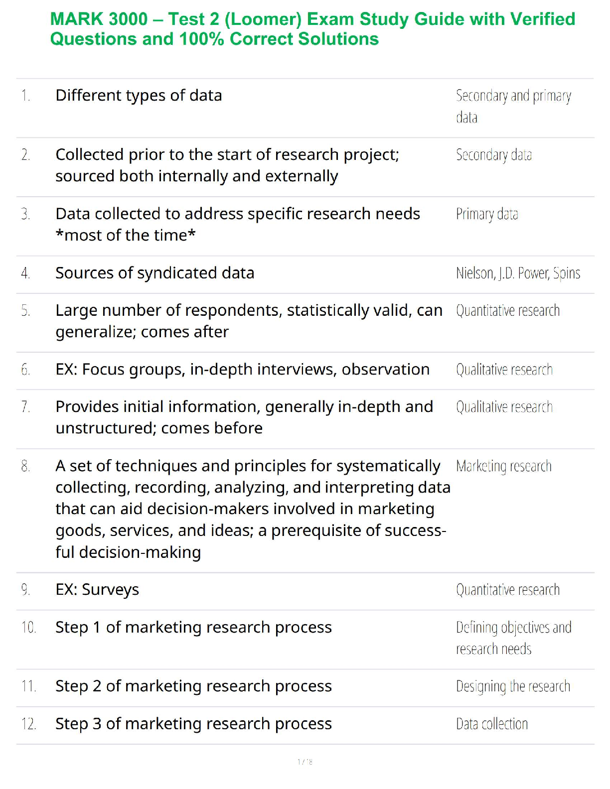 Marketing > STUDY GUIDE > MARK 3000 – McManus Final Exam Study Guide with Verified 100% Correct Solutions (All)