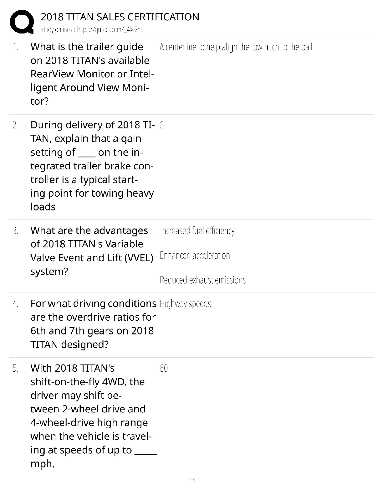 Marketing > QUESTIONS & ANSWERS > 2018 Titan Sales Certification / Nissan Truck Specialist Exam / Product Knowledge & Sales Process (All)