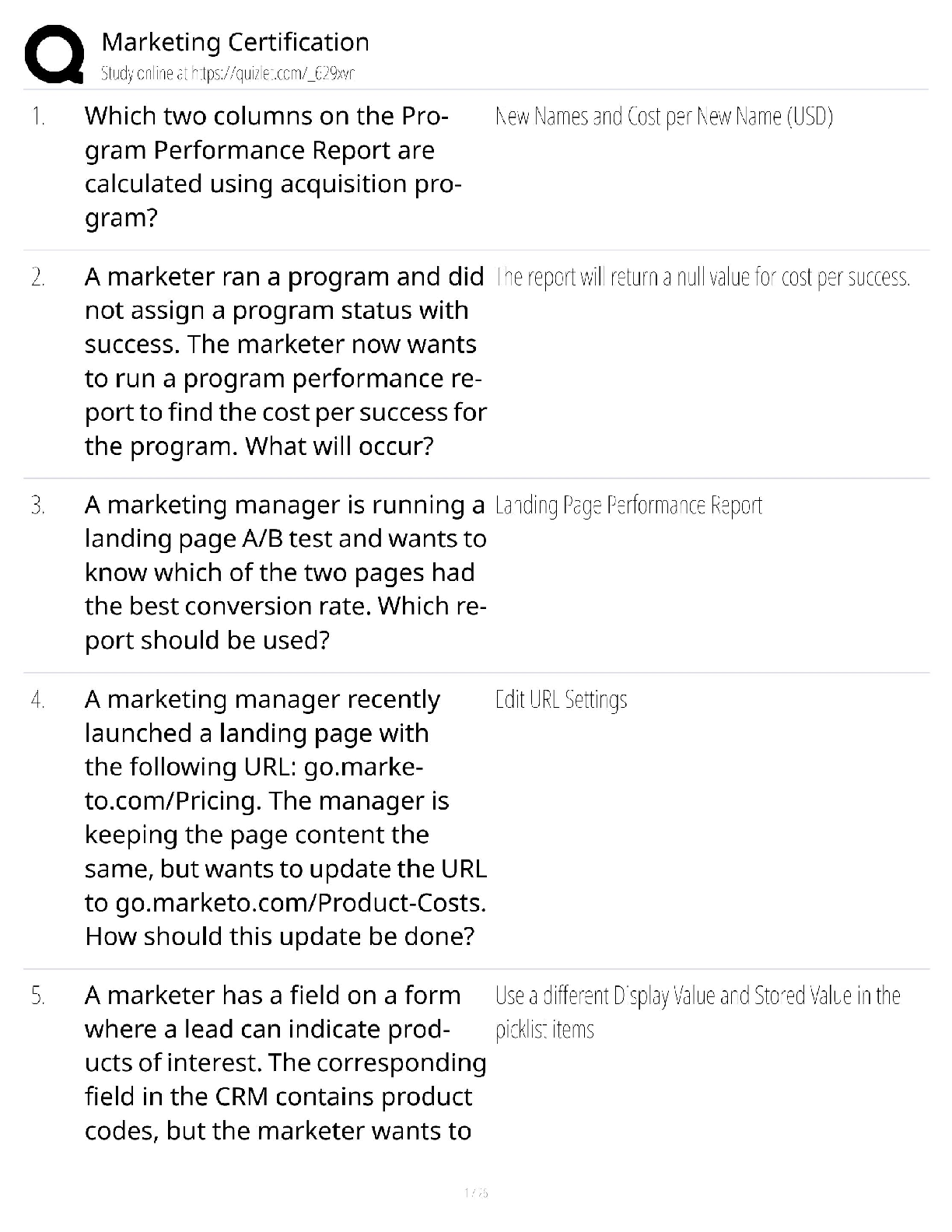 Marketing > QUESTIONS & ANSWERS > Marketo Certified Expert (MCE) 2024 Exam Guide / Pass with 100% / Real Practice Tests (All)