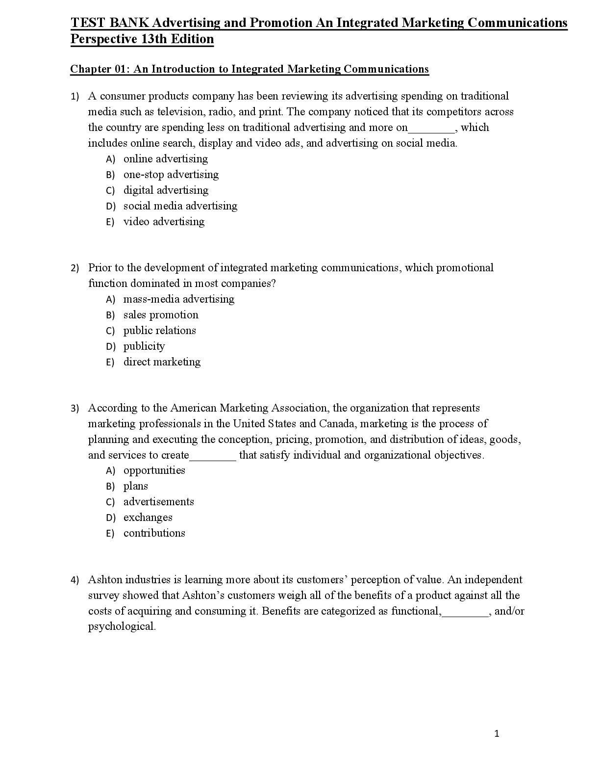 Marketing > TEST BANKS > TEST BANK Advertising and Promotion An Integrated Marketing Communications Perspective 13th Edition By George Belch A+ (All)